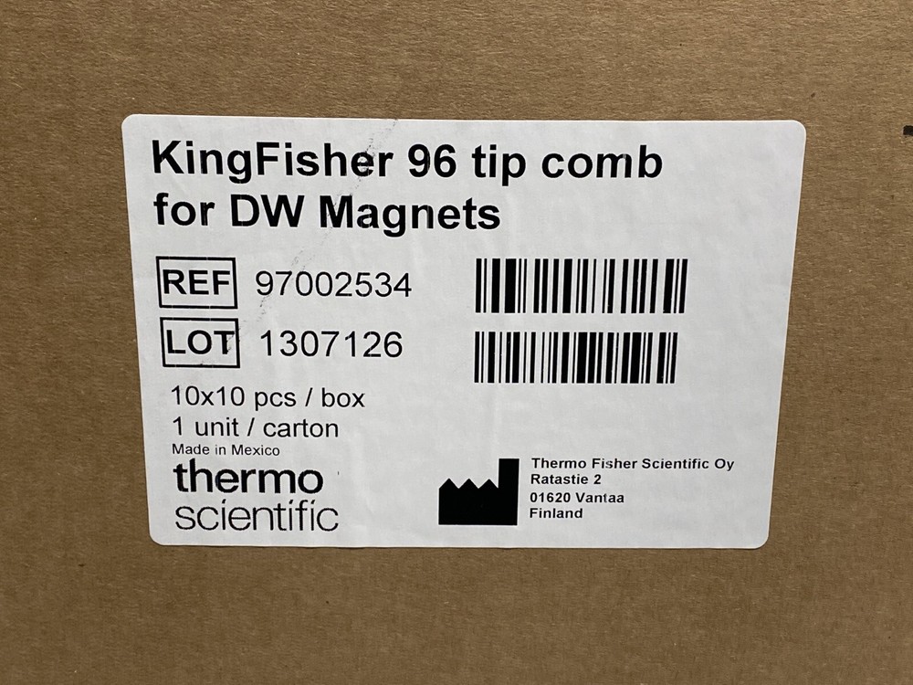 New, case of 10 packs (100 pieces total). Sealed tip combs. For use with KingFisher Flex and Presto. Use eBay Shopping Cart to combine items from multiple listings. Thanks for looking! Visit our store! Biotech Bargains CT Categories Glassware Lab Bench Supplies Lab Equipment Other Plasticware About Us Biotech Bargains specializes in the great prices on new and used laboratory glassware, consumables and equipment. Our inventory is sourced through liquidations and surplus from the biotechnology and pharmaceutical industries. We operate eBay stores out of Bristol, Connecticut (biotechct) and Cotati, Calilfornia (biotechca). Thanks for checking us out! _gsrx_vers_1608 (GS 9.5 (1608)) _gsrx_vers_1706 (GS 9.9 (1706))