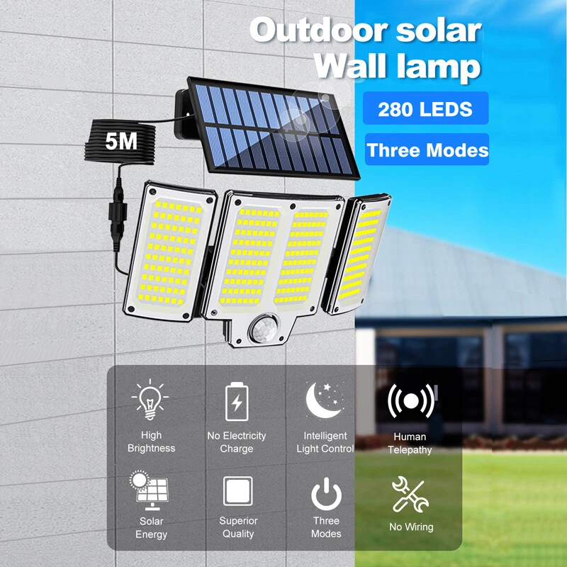 Product Description Description: Solar Outdoor Light Super Bright: The solar security light has design with built-in 280 super bright LEDs. With high light-gathering performance and high light-guiding lens, it can produce high brightness output up to 6500K. Our upgraded polycrystalline solar panels have a conversion rate of up to 21%. Incredible photocell efficiency, also works well in cloudy days and winter. Smart PIR Motion Sensor: Our solar powered LED security light has a built-in more sensitive motion detector that can detect motion up to 26 feet away. 3 modes. Easily Adjust the Lighting Angle of the light: Adjustable head can be up and down 180°. The detection range angle is up to 120°, and the lamps and solar panels can be easily adjusted to different angles according to your requirements.5 m (16.5 ft) cable (detachable) is provided between the sensor outdoor light and the solar panel. It is convenient for you to install it in a sunny place to meet your lighting needs from different angles. No electricity required, environmentally friendly product. Remote Control and 2 installation methods: No need to worry about taking it off to switch modes. Our solar lights come with a sensitive infrared remote that can be operated from up to 30 feet away. You can easily control the mode.Separate installation and integrated installation. All-Weather Resistant: This solar security lights is made of and waterproof materials, and it ensures that this outdoor solar lights for yard can work normally even in extreme weather. Specification: Material: ABS Power Source: Solar Powered Special Feature: Motion Sensor Control Method: Remote Control Lighting Method: Adjustable (3 Modes) Waterproof: IP65 LED QTY: 280PCS Color Temperature: 6500K ~ 7500K Solar Panel: 5.5V 1.8W Battery Capacity: 3.7V 2000mAh Charging Time: 6-8hrs (During the day) Working Time: about 8hrs Sensor Angle: 120° Sensing Distance: 3 ~ 8m / 9.8 ~ 26.2ft Special Feature: Energy Efficient, Dimmable, Motion Sensor, Water Resistant, Waterproof, Foldable, Portable, Shock Resistant, Adjustable Color Temperature, Adjustable Height, Low Voltage Package Included: 1 x Solar Motion Sensor Lights 1 x Remote Control 1 x User Manual Payment Shipping Returns Contact Us 1. This is the payment method we can accept: Paypal 2. You can checkout and pay immediately after the auction ends or you complete the purchases. If you need an eBay invoice sent to you by Email, please contact us before making payments. 3. Once the checkout is completed, you will not be able to include any additional purchases. We start to process and fulfill your order once payment is received. New purchases after the checkout will be processed separately. 4. Payments are expected within 4 days after the order is confirmed. Unpaid item (UPI) strike may be filed with eBay upon non-receipt of payment. 1. How much is the shipping & handling (S&H)? Our shipping and handling charges are clearly stated in the Shipping and Payments section of the item page, and we provide Free Shipping for most items. 2. For multiple purchases, the combine shipping discount will be automatically calculated when you check out and pay all of your purchases together. Items checked out separately may not be combined and the combine shipping discount will not be offered automatically. 3. Please make sure the correct Ship-To address is entered before checking out. Once the payment is completed, you may not be able to change the shipping address. We shall not be held responsible for any wrong or undeliverable addresses. 4. We usually ship within 1-2 business days of receiving cleared payment. 1. We put buyer's satisfaction at top priority. If you're not pleased with your purchases, we'll be happy to make an exchange or refund the item total price less Shipping and Handling (S&H) charges within 30 days of your purchases. 2. For any Exchange, Refund or Return, the item must be in its original condition, including the box, packaging, and all the accessories or gifts. 3. We'll provide prepaid return shipping label if the return is a result of our error. Postage reimbursement is offered only on standard mails, and it needs to be approved by our staff prior to returning. 4. Please allow up to 7 business days for returns to be processed. 5. Shipping and Handling (S&H) charges are not refundable. 1. Customer satisfaction is very important to us and our feedback rating reflects this satisfaction. If you have any question or concern, please contact us via eBay message. 2. We respond to all eBay messages as quickly as possible. Though your question will usually be answered very soon, please allow us up to one business day before you start thinking your message is neglected or the reply is avoided, because there would be time difference, non-working hours or public holidays that have prevented us from making an instant response. Payment 1. This is the payment method we can accept: Paypal 2. You can checkout and pay immediately after the auction ends or you complete the purchases. If you need an eBay invoice sent to you by Email, please contact us before making payments. 3. Once the checkout is completed, you will not be able to include any additional purchases. We start to process and fulfill your order once payment is received. New purchases after the checkout will be processed separately. 4. Payments are expected within 4 days after the order is confirmed. Unpaid item (UPI) strike may be filed with eBay upon non-receipt of payment. Shipping 1. How much is the shipping & handling (S&H)? Our shipping and handling charges are clearly stated in the Shipping and Payments section of the item page, and we provide Free Shipping for most items. 2. For multiple purchases, the combine shipping discount will be automatically calculated when you check out and pay all of your purchases together. Items checked out separately may not be combined and the combine shipping discount will not be offered automatically. 3. Please make sure the 