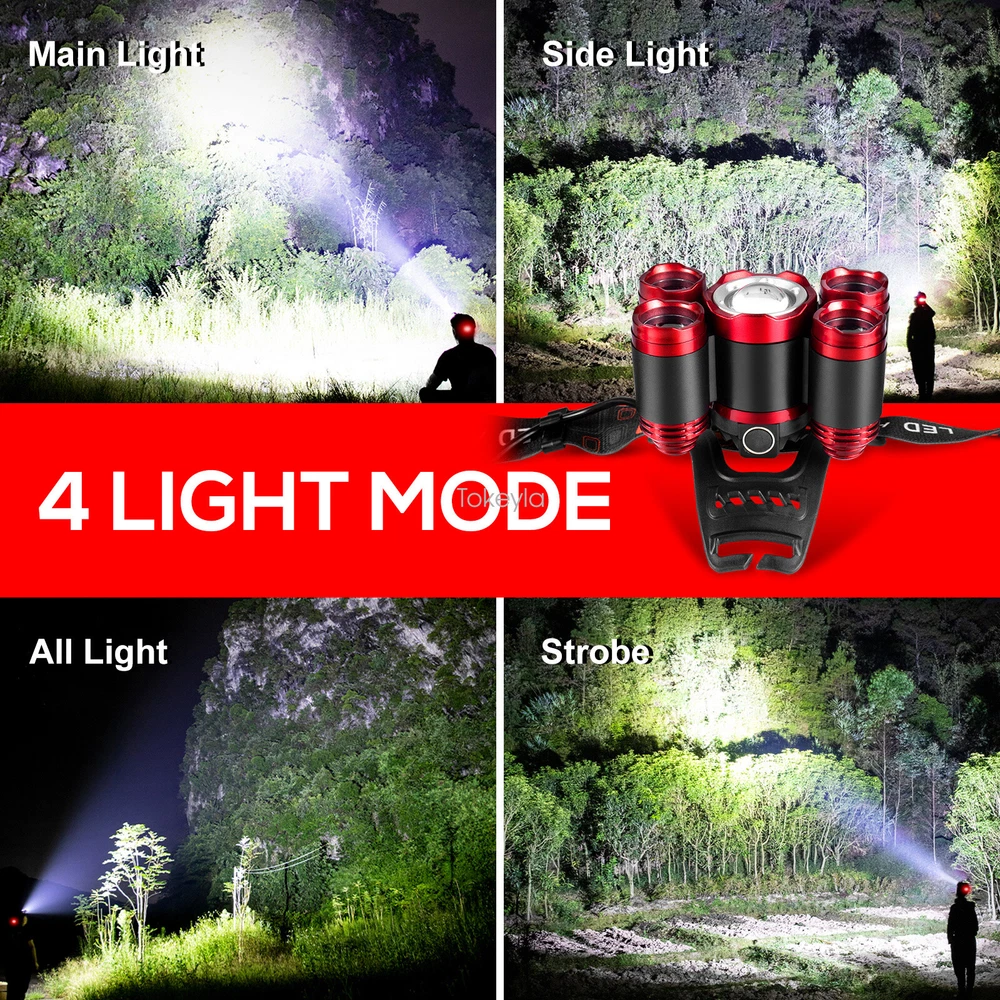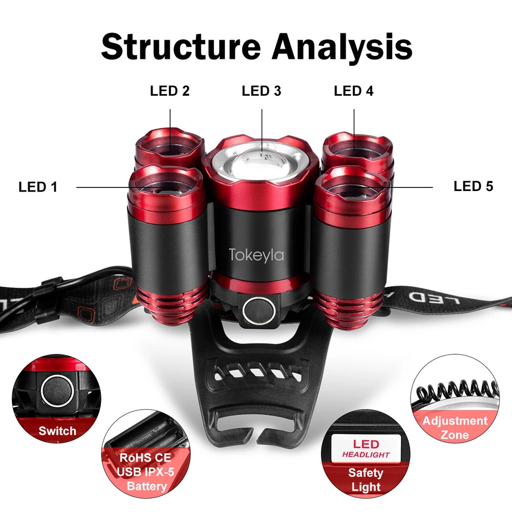 990000LM LED Headlamp Flashlight Super Bright Headlight Head Torch Waterproof LED Headlamp Features: 1.This LED Headlamp Flashlight Headlight can be worn on your head so that you can do what you want to do with the lights from your head. 2.Wearing this headband light, you could do what you intend to do while having your hands free. 3.It comes with 4 modes for you to choose from. 4.As it is USB rechargeable, it can work well as long as you have a power bank, a charger, a laptop and so on. 5.4.A wonderful helper to provide a low brightness lighting when you are hiking, camping, cycling, fishing, building something at night and so on. 6.The batteries are included to help you use it immediately once you receive it. LED Headlamp Specifications: Theme: LED Headlamp Flashlight Headlight Type: 5x LED LED Headlamp Flashlight Headlight Material: Aluminum Alloy, ABS Plastic Bulb: 5 x LED bulb Color: Red Life Span: over 10,000 hours Working Voltage: 4.2 V Charger Type: 5V 1A USB Charging Running Time(Longest): 3-5H 4 Modes: main light/4 side light/all light/strobe super bright LED Headlamp Rechargeable A super bright LED Headlamp Rechargeable. The combination of 5 LED gives out the brightest light. Package Included: Only 1x LED Headlamp Flashlight Headlight (No Battery) On Feb 2, 2025 at 19:35:23 PST, seller added the following information:
