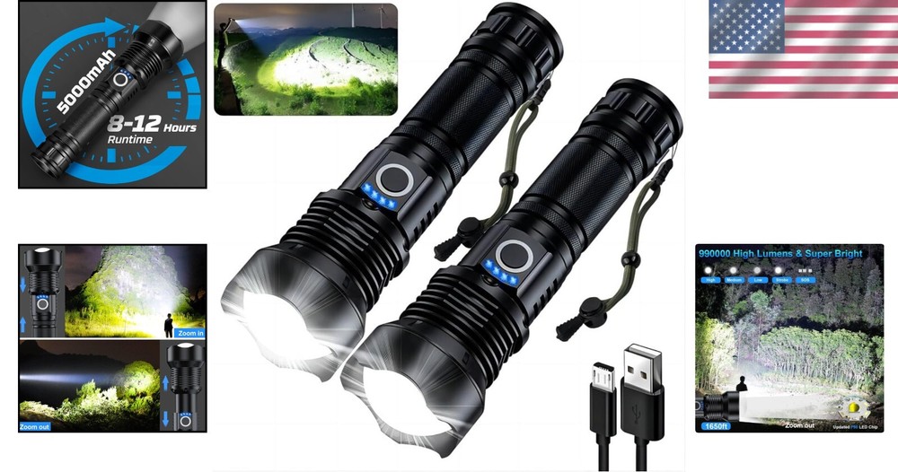 LED Flashlights 990K Lumens, Rechargeable & Waterproof - Perfect for Adventure ‹ › ‹ › ‹ › ‹ › ‹ › ‹ › ‹ › ‹ › ‹ › LED Flashlights - 990K Lumens Adventure Ready Discover the ultimate in illumination with our state-of-the-art LED Flashlight, boasting an astounding 990,000 lumens . Crafted for adventurers and outdoor enthusiasts, this powerful flashlight is your perfect companion for camping, hiking, and night explorations. Features: Unmatched Brightness: Powerful XHP50 LED bulb and embedded 5000 ɱAh rechargeable batteries provide a stunning brightness for effective visibility. Long Life & Range: With a service life of up to 10,000 hours and a range reaching 1,650 feet, you'll never be in the dark. Rechargeable Convenience: Enjoy the ease of recharging with a built-in power display, ensuring you're always prepared for your adventures. User-Friendly Design: Ready to use out of the box with a sealed back cover to avoid installation hassles and prevent damage. 5 Versatile Light Modes: Choose from five lighting options including an emergency SOS mode, adaptable for any situation. IPX7 Waterproof: Engineered with advanced materials for superior water resistance, making it ideal for rainy and snowy conditions. Benefits: Stay illuminated anywhere—from your back garden to the great outdoors. Rechargeable design means no more buying and discarding batteries. Reliably know when to recharge with the battery indicator display. Low power mode helps extend runtime when you need it most. Durable and waterproof, ready to face the elements without worry. Why choose our LED Flashlight? When it comes to outdoor adventures, don't settle for anything less than the best. Our LED Flashlight is engineered for peak performance, ensuring you have the brightness, longevity, and durability needed for any situation. Whether it's a camping trip, night fishing, or emergency preparedness, trust in our 990K lumens powerhouse to light your way. Illuminate your adventures with unparalleled brightness and reliability—order your LED Flashlight today! Shipping Free & Fast Shipping - We offer free shipping to most of the USA with a normal delivery time of 3-7 days. However, due to the current situation, additional delivery time (up to 3 weeks) may be required for some items. Alternative Carriers - We may use alternative carriers (e.g. USPS, FedEx, UPS, etc.) to ensure your package arrives safely and on time. Due to the use of multiple carriers, we are unable to provide a tracking number automatically. Handling Time - Orders are processed and shipped within 1-2 business days of receiving cleared payment. Shipping Restrictions - Shipping to Alaska, Hawaii, Puerto Rico, Guam, and other US territories may incur shipping charges or delivery restrictions. Please contact us before ordering, or your order can be refunded/cancelled. State Restrictions - There may be restrictions based on your state of purchase. For example, certain items may not be shipped to California due to state regulations. Contact for Tracking Updates - If you require tracking updates or have any concerns about the delivery of your order, please feel free to contact us, and we will be happy to assist you. Return Please see our eBay Return Policy. Thank you. Payment We accept all major credit cards, PayPal, and Apple Pay for your convenience. Your payment information is secure and encrypted to ensure a safe and seamless transaction. Please complete your payment within 3 days of purchase to avoid any delays in shipping. Feedback Your feedback is extremely important to us. We strive to provide the best products and customer service possible. If you are satisfied with your purchase, please take a moment to leave us a positive review. If you have any concerns or issues with your order, please contact us before leaving negative feedback. We are committed to resolving any problems and ensuring your satisfaction. Contact Us If you have any questions or concerns, please feel free to reach out to our customer support team. You can contact us through the eBay messaging system. We are available Monday to Friday, 9:00 am to 5:00 pm EST, and we will do our best to respond to your inquiry within 24 hours. Thank you for supporting our small family business! UPC: Not Set Voltage: 5 volts Item Height: Not Set Item Length: Not Set Item Weight: 1.1 pounds Item Width: Not Set Model: Not Set Lumens: 990000 Number of LEDs: 1 Unit Quantity: 2 Material: Aluminum Features: Rechargeable,Waterproof,Power Display,5 Light Modes,Non Slip Grip,Adjustable Focus Brand: Unbranded Type: Flashlight Lighting Technology: LED Power Source: Battery Operating Range: 3280 feet MPN: Not Set Battery Technology: NiMH Number of Batteries: 2 Color: Black Country/Region of Manufacture: Not Set Operating Time: 12 Hours IP Rating: IPX7 Number of Lights: 1-3 Unit Type: lb Personalize: Not Set