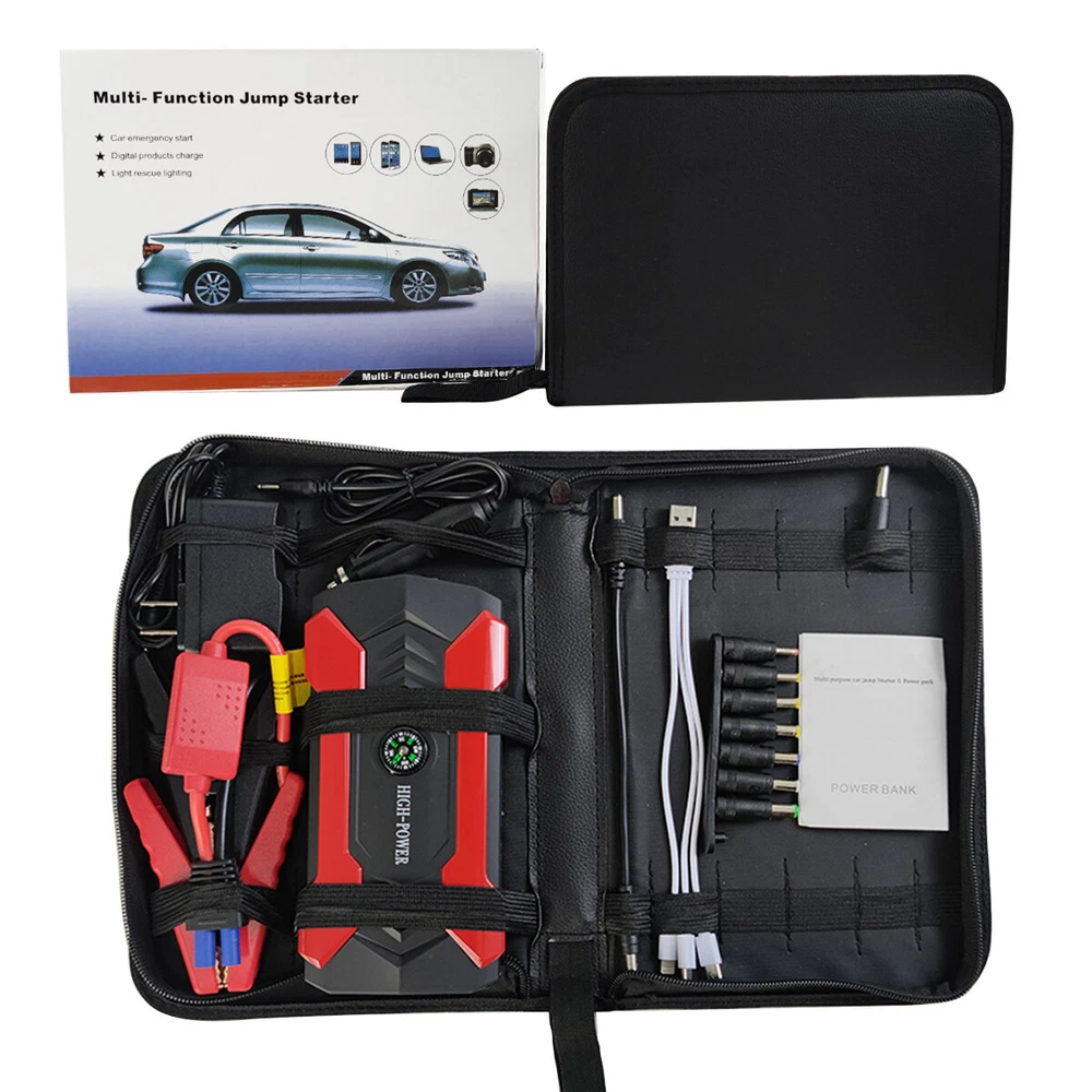 99800mAh Car Jump Starter Booster Jumper Box Power Bank Battery Charger 4 USB 12V 1200A LED Car Jump Starter Portable Emergency Charger Battery Power Bank Car Booster Starting Device Feature: 1. With strong light flashlight function. This LED light has 3 modes: Glare lighting, Strobe and SOS, it is ideal for camping, outdoors, indoors, emergencies, travel, etc. 2. The shell cloth wrapper has better hand feeling and better scratch resistance. 3. With car emergency ignition function, provide better protection for your travel. 4. Fast charging output, with 4 USB ports, fast charging speed. Faster and compatible with almost all devices. 6. With precise compass positioning function, outdoor off-road is safe and reliable. 7. With nine protection functions,overheating protection, short circuit protection, voltage protection, overcurrent protection, overcharge protection, over discharge protection, anti-anti-protection, magnetic field protection, and cell protection. Including integrated circuit board, including software and hardware protection. 8. Easy to use, no need to install, no need to set up, just use a clip to connect the car positive and negative, turn the power on, the car can start. Specification: Item Type: Car Jump Starter Battery Capacity: 99800mAh Car Start Port: 12V USB Port: 5V Notebook Port: 19V/16V Vehicle: 12V Charging Voltage/Current: 15/1A Starting Current: 400A Peak Current: 1200A (<3S) Operating Temperature: -20℃ to 60℃ Full Charge Time: About 4 Hours Cycle Life: More Than 10,000 Times Plug: US Item Size: As the picture show Package List: 1 x Car Jump Starter 1 x Power Adapter 1 x Car Charge-r 2 x Battery Clamps(Black+Red) 1 x 4 in 1 Mobile Phone connectors 8 x Laptop connectors 1 x Laptop Adapter Cable 1 x User Manual 1 x Carrying Bag Payment Only PayPal is acceptable. It is a safe and easy payment method for buyers. Please pay in 48 hours after you win the item(s). If payment cannot be made in five days, your order(s) will be claimed as unpaid case and the item will be relisted. Shipping All item will be carefully packaged very well with safe material and shipped to US States. Items will be sent in 2 working days, usually shipped by USPS Priority Mail. It will take about 3-5 days to US addresses. If you would like to ship by other shipment methods,please contact us. ( shipping cost will be combined for multiple items you purchase at a time.) Returns Customer satisfaction is our first priority. 30-days return is available after delivery. However, return shipping and insurance cost will be on buyers. Please email us before returning. Delivery date will be different according to UPS or USPS tracking system, so please inspect your item immediately upon arrival. Money will be return to you after the return item is sent back. We can not refund to you, if your return item is broken or damaged. Please ensure its safety. Feedback Your feedback is very important to us. If you can't leave us a "5-Star" rating and a positive feedback, please contact us without hesitation before leaving feedback. We are eager to work with our customers. We believe in communication. Give us a call or send us an email, we will make things right for our buyers. Positive feedback for our buyers will be left automatically by eBay Seller Manager Pro.