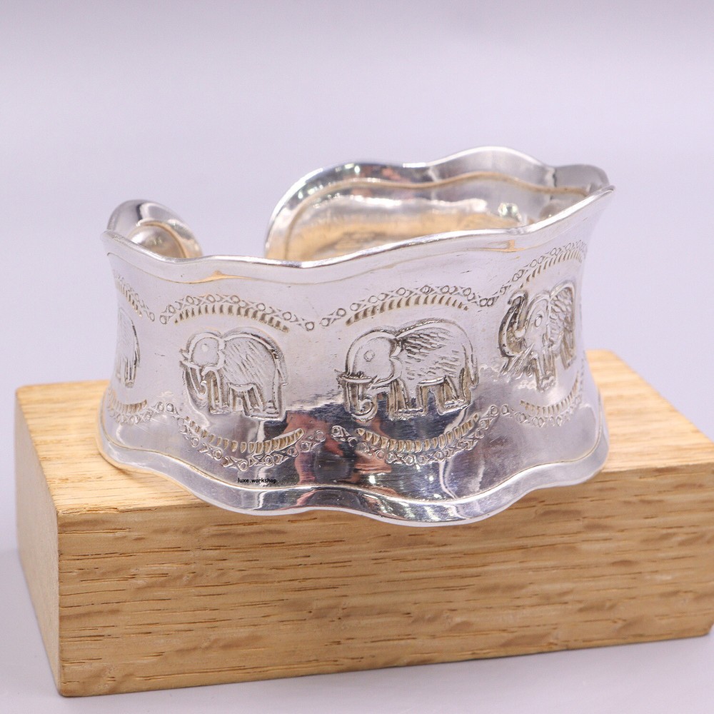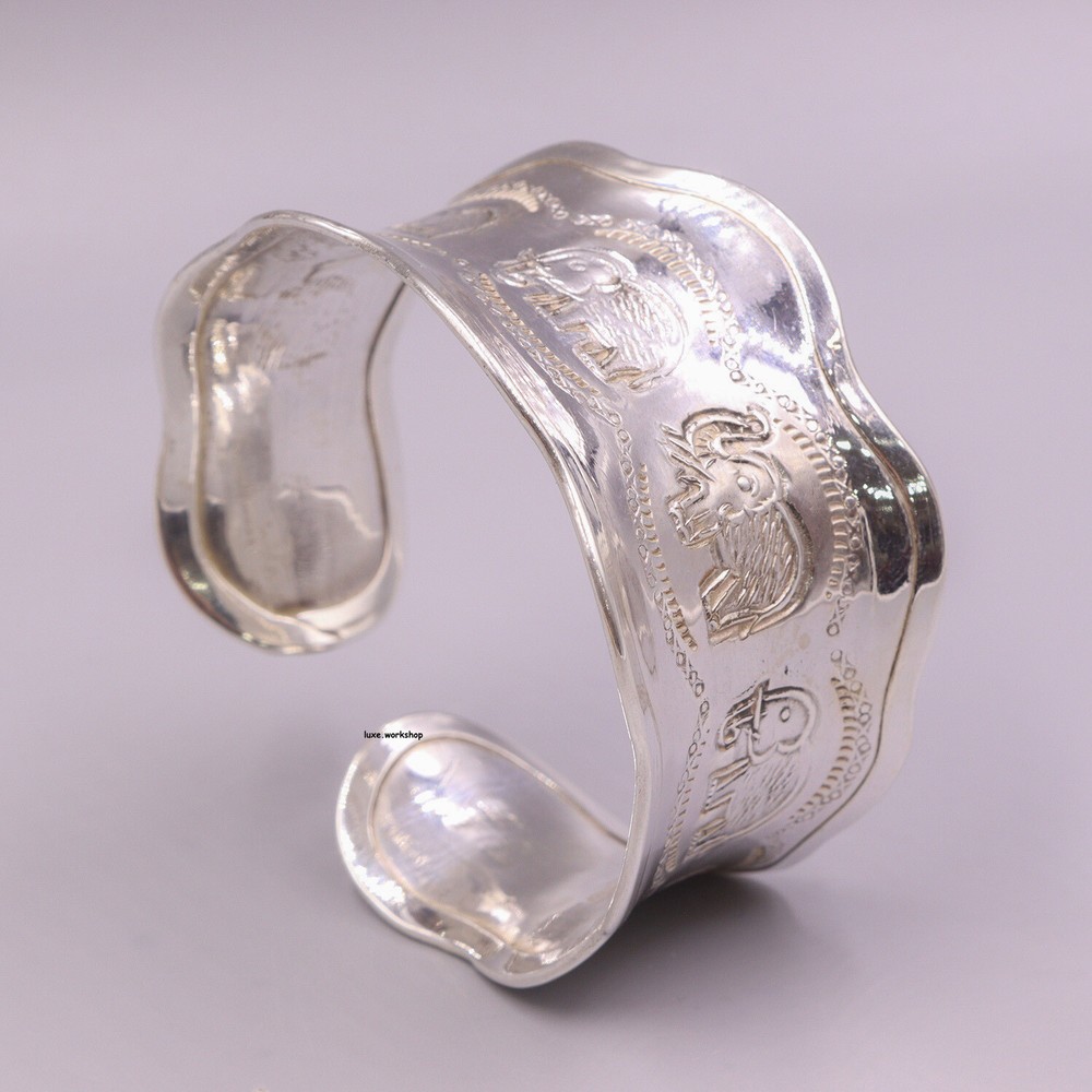 Our picture, description, Unauthorized Use is Strictly Prohibited.---eBay Seller: luxe.workshop SPECIFICATIONS The item Are Made By Pure 999 Silver,it support test Metal:Pure Silver 999(Fine Silver) Bangle Inside Diameter:Can adjust from 58mm (2.28inch) to 60mm (2.36inch), Fit the wrist width less than 2.36inch Silver Weight:37-38g Band Width:33mm Stamp:足银999 If you encounter silver products turning black or yellow, please do not worry. This is due to silver oxidation. You only need to follow the cleaning method on our details How to Choose fit Bangle: Measured wrist width,the wrist width need less than bangle inside diameter How to wear an open bangle: Pull the bangle with equal force on both hands (just gently pull it). Wear it from the narrowest part of the wrist(The opening of the bangle is not easily widened when being pulled apart) . After putting it on, close the bangle(Dear, you're all set with the wearing now). The function of silver: Silver products can generate a magnetic field within a certain range, releasing a large amount of silver ions. Silver ions have strong bactericidal effects and have health benefits for the human body. It not only has economic value, but also is beautiful and generous. The ancients said that carrying silver will accompany health, wealth, and prosperity, not only because of its precious metal, Medically, it has a higher efficacy on human health than gold. What does 999 silver mean? 999 silver refers to silver products with a silver content of about 99.9%, and a purity of about 99.9% is recognized as pure silver, which is soft and easily oxidized . Why does silver jewelry turn black after wearing it for a long time? The blackening of silver jewelry worn is a normal oxidation. Because silver reacts chemically with sulfur in the air over a long period of time to produce black silver sulfide, it can cause silver jewelry to gradually turn black. How to deal with blackened silver jewelry? You can try using a drawing eraser to wipe away the slight black oxide on the surface of the silver jewelry. You can try applying a small amount of toothpaste on the surface of the silver jewelry, then using a toothbrush dipped in warm water to scrub, and finally drying it with a full wool soft cloth. When the surface of silver jewelry shows slight discoloration due to mild corrosion, it can be gently wiped with detergent or hot medium-sized soap. First, use a soft bristled brush to wash, and then dry with full wool soft cloth. At this time, the silver jewelry will show its original brightness. Wash the silver jewelry by heating it with laundry detergent and boiling water to form a solution, then wet the surface with phosphoric acid solution and wipe it with a cloth to make it cleaner. When silver jewelry oxidizes, it presents a light coffee color. It can be wiped with a soft cloth dipped in a little silver oil, soaked in silver washing water, or directly wiped with a silver cloth. Soak the silver jewelry in silver washing water for a while, then take it out and rinse it with clean water. Thai Silver Maintenance: The best maintenance method for Taiyin is the same as jade, which is to wear it every day. The natural oil produced by the human body can keep Taiyin jewelry warm and shiny. (Of course, there are exceptions. Some people's sweat contains ingredients that can turn silver black.) When not wearing it, it is important to pack it in a closed bag to prevent the surface of the silver jewelry from oxidizing and turning black when exposed to air Daily cleaning method: Put some toothpaste on the silver jewelry, add some water, rub it appropriately until small bubbles appear, and then rinse with clean water to restore its shine. When wearing silver jewelry, do not wear other precious metal jewelry at the same time to avoid collision, deformation or abrasion. Do not wear while taking a shower, as some cleansers and shampoos contain alkaline ingredients that can oxidize and corrode Thai silver; Do not wear it when swimming, especially when swimming in seawater or soaking in hot springs. Wearing silver jewelry requires regular cleaning. When wiping silver jewelry, a soft cloth, preferably a professional one, should be used. Silver wiping cloth contains maintenance ingredients and cannot be washed with water. The difference between pure 999 silver and Thai silver 925: The natural color of pure silver jewelry is generally yellowish. In order to float, chemical plating is used to coat a layer of silver on the surface of pure silver, which is a bright white color. Some pure silver surfaces are not coated with bright silver using chemical plating methods. This type of pure silver tends to be yellowish, revealing the natural color of silver, which is beige. Thai silver, Its craftsmanship comes from Thailand. In terms of material, it is 925/990 pure silver, which is a special term for a vintage and special craftsmanship. Also known as' Wuyin '. Due to special anti-aging treatment, black silver jewelry not only does not change color for a long time, but also greatly enhances its surface hardness. The unique texture and color make this jewelry rough and rustic. SHIPPING POLICY Our All Items Will Be Dispatched Within 1-5 Business Day By Airmail After The Payment Is Clear. . Generally You Will Receive Your Order Within 10-45 Business Days After We Dispatched Your Package To The Delivery Company. We Cannot Guarantee The Delivery Timeframe If The Post Office Has Any Unexpected Delays Due To Holiday, Weather, Customs, Or Other Conditions. Please Choose Some Local Sellers, If You Cannot Wait Patiently In The Shipping Time We Declared. We Appreciate Your Patience If You Haven't Received Items In 60 Days(Due To Local Delivery System And/Or Customs). If You Are Concerned In Any Way, Please Feel Free To Contact Us Via Ebay Message Instead Of Leaving Negative/Neutral Feedback Or Opening A Dispute. We Will Make Every Effort To Fix Any Problem(Resend Or Refund Any Missing Item). Customs Duty Is 