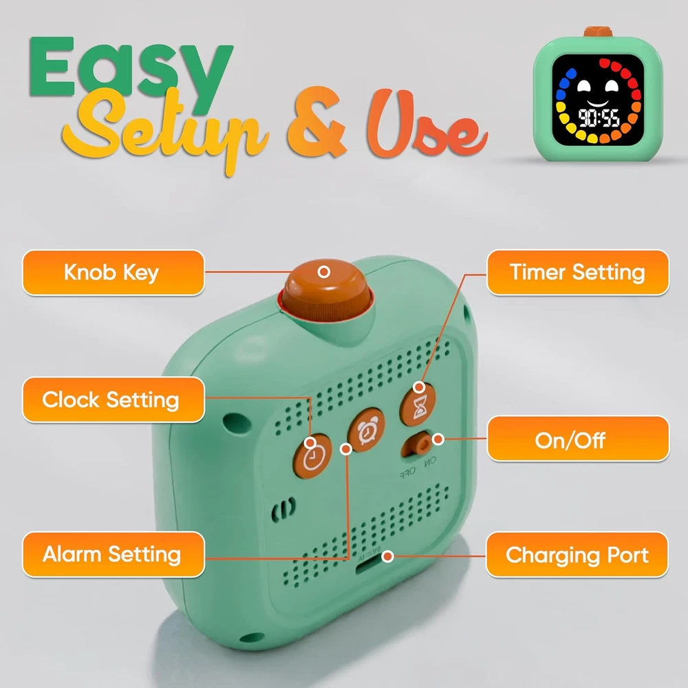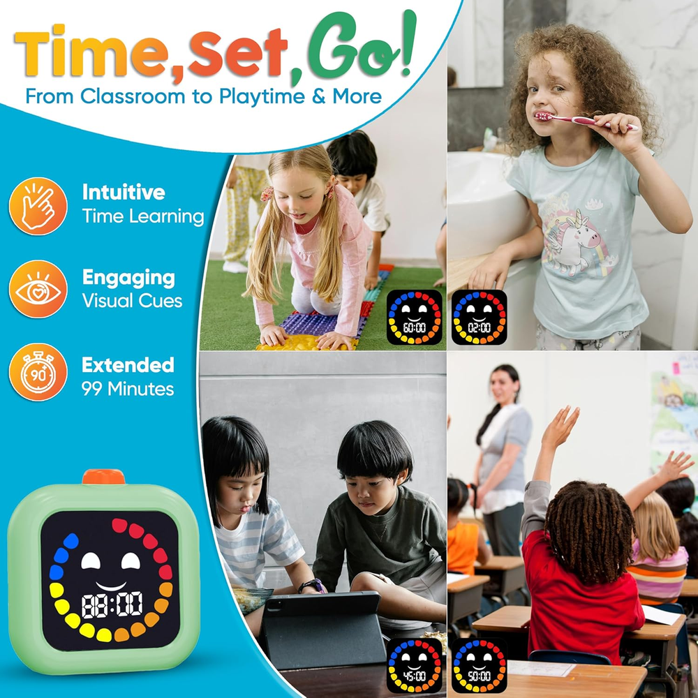 Store New Arrivals Add to Favorite View Feedback Contact Visual Timer for Kids - 99 Minute Digital Rechargeable Countdown Kids Timer Visual for Classroom, Homework, Screen Time - Adjustable Autism, ADHD, and Time Management Tool (Green) Description Item model number TBV Color Green Brand VISSE Material Plastic Country of Origin China Number of settings 5 Item Weight 5.28 ounces Batteries 1 Lithium Ion batteries required. (included) Product Dimensions 1.6"D x 3.55"W x 3.93"H Manufacturer VISSE-BRAND ENGAGING VISUAL LEARNING - Our 99-minute visual timer for classroom includes a colorful visual countdown display with a smiley face, making time management both fun and intuitive. Easy to set up and use, it enhances task focus and time perception. ACCOMMODATES ALL NEEDS – Our visual timer for kids with autism, ADHD, or any learning needs features adjustable alarms, brightness, and silent operation to suit various sensory preferences. It provides clear visual cues and fosters independence. NO MORE BATTERY WASTE - Our digital timer for kids lasts up to two weeks per charge, eliminating the hassle of frequent battery changes. With no ticking sound, it aids in managing daily routines and reduces anxiety by ensuring smooth transitions. VERSATILE AND USER-FRIENDLY – Our visual timer for toddlers offers simple controls for ease of use and supports count-up, count-down, clock, and alarm functions. With a clear, easy-to-read display visible from a distance, it's perfect for any activity. RELIABLE FOR EVERY SETTING - Our ADHD timer features robust construction for long-lasting use. Lightweight and compact, the kids visual timer is ideal for home, school, therapy sessions, and activities like homework, reading, screen time, or playtime. Product Description The video showcases the product in use. The video guides you through product setup. The video compares multiple products. The video shows the product being unpacked. 1 BENEFITS 2 FEATURES 3 WHAT'S INCLUDED Effortless Volume Setup for Your Child's Visual Timer Mastering time management is crucial for kids, and our visual timer makes it fun and easy. Setting up the volume mode is simple and ensures your child's timer suits their unique sensory needs. Whether they need a gentle beep, a silent alert, or something in between, our timer adjusts to create the perfect environment for focus and productivity. Watch this quick tutorial and see how easy it is to customize the volume settings for a seamless experience. The video showcases the product in use. The video guides you through product setup. The video compares multiple products. The video shows the product being unpacked. Simple Brightness Adjustment Creating the perfect visual cue for your child is effortless with our adjustable brightness settings. Our visual timer for kids lets you customize the screen brightness to fit any environment, ensuring clear, engaging visuals that help your child stay on track. This quick tutorial will show you how easy it is to adjust the brightness level, making the timer adaptable to any setting. The video showcases the product in use. The video guides you through product setup. The video compares multiple products. The video shows the product being unpacked. Customize Your Child's Timer Display with Ease Enhance your child's time management with our versatile screen selection feature. Our visual timer allows you to hide the countdown numbers and focus solely on engaging visual cues like colored dots and a smiley face. This quick guide shows how to customize the display during countdown/up, making it simpler and more enjoyable for your child to track time. The video showcases the product in use. The video guides you through product setup. The video compares multiple products. The video shows the product being unpacked. How does the visual timer help children with time management? The visual timer helps children by providing a clear and engaging way to visualize the passage of time, using colorful dots and a smiley face to indicate time remaining, which can enhance their time perception and task focus. Is the timer suitable for children with ADHD or autism? Our timer is designed with features that cater to various sensory preferences, making it an effective tool for children with ADHD, autism, or other sensory processing challenges. What are the customization options available on the timer? The timer offers adjustable alarm modes, brightness levels, and selective screen displays. These options allow parents and educators to tailor the timer to each child's specific needs, providing clear visual cues and quiet operation. Is the timer easy to set up and use? Absolutely! The timer is designed with user-friendliness in mind. It features simple controls for easy setup and operation, making it accessible for both children and adults. How long does the battery last, and is it rechargeable? The timer is rechargeable, eliminating the need for constant battery replacements. It can operate for up to two weeks on a single charge, providing a convenient solution for continuous use. OUR PRODUCTS Add to Cart Add to Cart Add to Cart Add to Cart Customer Reviews 4.5 out of 5 stars 124 4.4 out of 5 stars 498 4.4 out of 5 stars 498 4.4 out of 5 stars 498 4.4 out of 5 stars 498 Price $19.99 $ 19 . 99 $49.99 $ 49 . 99 $49.99 $ 49 . 99 — $49.99 $ 49 . 99 Color Green Teal/Orange Blue/Pink Grey/Mint Blue/Green Size 3.74" x 3.54" 55" x 59" 55" x 59" 55" x 59" 55" x 59" Benefits Time Management Made Fun Calming & Fun Calming & Fun Calming & Fun Calming & Fun Age 3+ 3+ 3+ 3+ 3+ Installation Required ✘ ✔ ✔ ✔ ✔ ABOUT US We offer the best prices around on high quality products. Our E-store includes media such as books, movies, music and games while offering electronics, toys, sporting apparel, clothing, tools, general home, garden items and more. SHIPPING We are always working hard to ensure your package arrives as soon as possible. Please understand that some factors like weather, high 