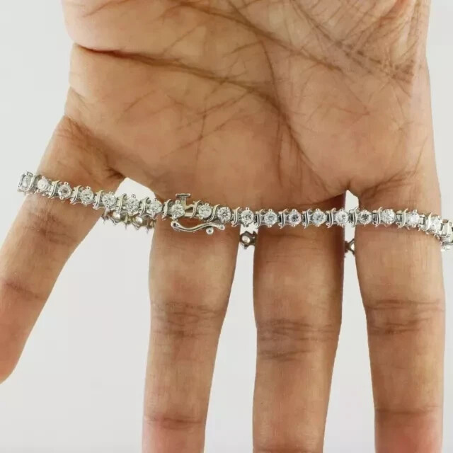 Wholesale: Yes Setting Style: Prong Sizable: Yes Type: Bracelet Customized: Yes Colored Diamond Intensity: Fancy Color: White Metal Purity: 925 Seller Warranty: Yes Main Stone Treatment: Not Enhanced Seller Notes: “?***$$$Valentine-day Big Sale Offer *$$?” Certification: NA Theme: Beauty Diamond Clarity Grade: Very, Very Slightly Included (VVS1) Occasion: Anniversary, Birthday, Christmas, Engagement, Valentine's Day, Wedding Gemstone Clarity Grade: Eye Clean Total Carat Weight: 9.00 Ctw Diamond Color Grade: D Shape: Round Features: Engraved Main Stone Shape: Round Base Metal: Silver Main Stone Creation: Lab-Created Cut Grade: Excellent Main Stone Color: White Brand: Jewelryforyou-7 Closure: Spring Ring Item Length: 7.5 in Style: Tennis Chain Type: Round Link Secondary Stone: Diamond Main Stone: Diamond Material: Stone, Metal Metal: Sterling Silver Personalize: Yes
