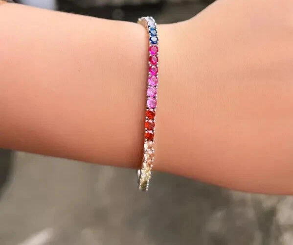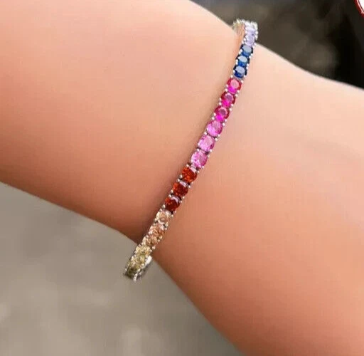 Secondary Stone: Diamond Main Stone Shape: Round Closure: Snap Main Stone Creation: Simulated Antique: No Personalize: Yes Charm Type: Snap Material: Stone, Metal Number of Gemstones: As Per Picture Seller Warranty: Yes Base Metal: Sterling Silver Metal: Sterling Silver Wholesale: Yes Brand: karunas-76 Occasion: Anniversary, Birthday, Christening, Christmas, Engagement, Graduation, Mother's Day, Valentine's Day, Wedding Customized: Yes Main Stone Treatment: Not Enhanced Item Length: As per picture Color: White Gemstone Clarity Grade: NA Handmade: Yes Sizable: Yes Type: Bracelet Country of Origin: India Vintage: No Main Stone Depth: As per picture Features: Engraved Style: Tennis Cut Grade: Excellent Country/Region of Manufacture: India Main Stone Width: As per picture Theme: Beauty Metal Purity: 925 Main Stone Color: Multicolor Signed: No Setting Style: Prong Shape: Round Main Stone: Sapphire Era: Undated Chain Type: Cable Main Stone Length: As per picture