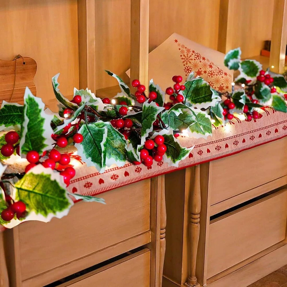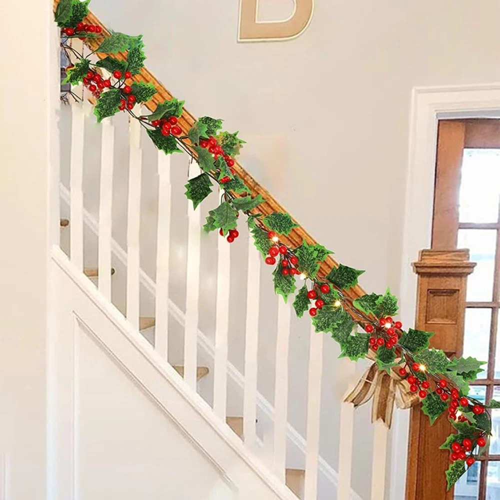 2024 Lighted Christmas Garland,Christmas Decorations,holiday and New Year decor.Christmas porch decor,Fireplace christmas decorations 9FT Lighted Christmas Garland: The Christmas mantle garland measures 9ft long, with individually crafted branch tips, decorated with warm white LED lights, red berries and green holly leaves, create a lively feel to your holiday and New Year decor. Light Up Your Christmas: This cute Christmas garland lighted with LED warm white lights among the leaves create a glowing nighttime display. Illuminate your home for enjoy all shine to create a festive and enjoyable Christmas atmosphere. Battery Powered : Operated by 3 AA batteries (not included) to give a long-lasting brightness. No trouble with mess extra wires and worry about there is no plug nearby. The battery case is not waterproof, please keep away from water. Widely Christmas Decorations: For indoor and covered outdoor use. These beautiful natural-looking garland decorations add elegance to any party, home, classroom, or office. Perfect for Christmas party, wedding, bedroom, garden, balcony, swing stand, shopping malls, mantels, doors, table centerpiece and covered front porch staircase and many other decorations Easy to Use: The lighted garland comes pre-assembled to save you time and effort. The lightweight construction of the garland also makes it easy to handle and hang. You can easily place it on your front door, mantelpiece or anywhere else you like. The flexible garland allow you to adjust the shape and arrangement to suit your taste.