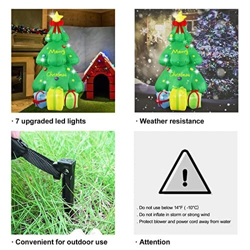 30 Days Return Policy Fast Delivery Trusted seller 9FT Christmas Giant Inflatable LED Light Large Blow Up Yard Decorations for Xmas Home Garden Family Prop Lawn Holiday Indoor Decor, Christmas Tree with Gift Box Product Description 【Good-Quality Material & Specifications】 Constructed from premium waterproof polyester fiber. Each one is equipped with 3-7 LED lights, depending on its size, for a magical glow. Easy to install without tools, blow up decorations come with ground stakes and ropes to secure them in place, ensuring stability even in windy weather 【Indoor & Outdoor Use】Display this blow up Christmas decorations in your living room, houseroom and bedroom for indoor decor. Extensive outdoor use for backyard, garden, balcony, yard,lawn decor or any other outside places. Creating a festive atmosp for Halloween or other celebrations on your lawn. Perfect for winter decorations, holidays, parties, night events, Xmas Eve, or any festive occasion to transform your space into a wonderland 【Fast Self Inflation】Enjoy hassle-free setup with our inflatables' automatic inflation feature.Each inflatable comes with a powerful built-in fan, inflating in seconds once plugged in. Don't forget to zip up the bottom zipper closely before inflation and keep it standing while blowing for fully inflating 【Multiple Xmas Decoration】Choose from a variety of holiday-themed santa claus inflatable LED light options, including santa claus with reindeer pull sleigh, bell santa claus, dinosaur santa claus and Christmas tree. Good for families with children who want to add festive elements to their home.Built-in upgraded led warm white lights more add a touch of warmth to the cold winter 【Giant Sizes Available】Stand out in the neighborhood with our large-sized inflatables, available in 8ft and 9ft heights. Huge snowman are sure to turn heads in your community! Place them in front of stores, studios, restaurants, shopping centers, windows, or commercial buildings to attract attention and increase foot traffic Shipping Returns Payment Shipping Shipping is FREE to all addresses other than APO/PO boxes in the lower 48 states. All our stock ships from US-based warehouses. Shipped via USPS or UPS (depending on location and package weight) Unless stated otherwise, all orders will ship within 24-72 hours of your payment being processed. Check our feedback to see the great reviews of FAST shipping we offer. Returns As our valued customer, we will do our best to make sure the product you receive arrives to you on time and as expected. If you are not satisfied with your purchase, please contact us within 30 days of receiving your order to process a return. Payment We currently accept payment via eBay managed payments only. Once payment is cleared, we will dispatch your shipment within 1-3 business days. Please refer to the "Shipping" tab for more information regarding shipping speed to your destination.