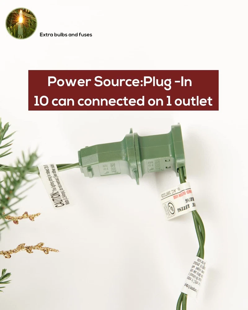 Christmas Garland 50 Lights NATURAL LIFELIKE: Measures 9 FT.Length 12 inch Diameter with 320 branch tips, Look lifelike artificial Christmas garland. BEAUTIFUL DECOR: Trimmed with Flocked Red Berries, Colorful Glitter Pine Cone,made of flame-retardant PVC Fire resistant and non-allergenic. BUILT-IN LIGHTING: Pre-strung with 50 warm white lights, The light stay on even when a bulb goes out,easy quick set up lights(Includes spare bulbs and fuses). INDOOR OR OUTDOOR: Create a festival environment suitable for Christmas, shopping malls, party, bars, window, entryway, garden, mantle, hotel lobby, office, wedding or any indoor or outdoor decor. SATISFACTION - Customer satisfaction and service quality are the basic criteria of . If anything ever goes wrong with your item, please feel free to contact us.