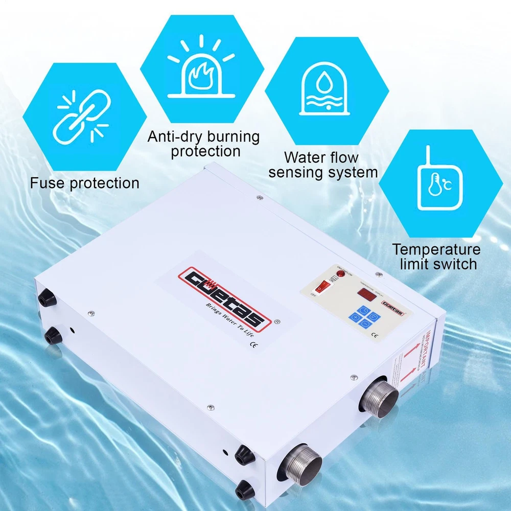 Store category Sign Up Now ! You may also like Product Description Please Note: 1.If an error occurs, the pool heater will stop immediately and a message will appear on the control panel so that the user or technician can determine where the error is. The safety of the customer is a top priority. 2.Prohibit the use of seawater or salt-added disinfectants to sterilize thermostats(Excessive chlorine in disinfecting water is not good either, About 5 grams of water per cubic meter), as highly concentrated saltwater is very corrosive to stainless steel. Specifications: Liner material: stainless steel Voltage: 220V Power: 9KW/11KW/18KW Phase: single phase Connection size: 40 mm (1.57 ") Machine size: 49 x 10 x 38 cm / L x W x H. Suitable for: hot tub & swimming pool equipment ●The 1KW is suitable for 1 ft³ ●The 9KW thermostat is suitable for a pool with ≤ 212 ft³ / 6m³ ●The 11KW thermostat is suitable for a pool with ≤ 259 ft³ / 7.3m³ ●The 15KW thermostat is suitable for a pool of ≤ 353 ft³ / 10m³ ●The 18KW thermostat is suitable for a pool with ≤ 424 ft³ / 12m³ It is recommended to use the thermostat with a circulating water pump: 1.Operating procedure: first turn on the water pump and then the thermostat. 2.Shutdown: First turn off the thermostat, wait a while (10 seconds to 1 minute depending on the performance of the thermostat) and then turn off the pump. 3.Reliable leak protection devices must be installed and commissioned by the responsible electrician. Monthly maintenance and inspection. 4.The additional heating effect of the thermostat is better. Direct heating requires the use of a more powerful machine. Packing List: Electric pool heater x1 Instruction manual x1 Note: 1. Due to the different display and lighting effects, the actual color of the product may be slightly different from the color shown in the picture. Thanks! 2. Due to manual measurement, a measurement deviation of 1-3cm is allowed. Payment Delivery details Terms of sales About us Feedback & DSRs Payment Before you palce an order, please kindly make sure that you have a paypal account. We accept PAYPAL payment only. Payment should be completed within 2 days after auction closed, or unpaid dispute will be filed for an closing auction. An unpaid case will be filled after 4 days. Delivery details We ship to your eBay address. Each package will be shipped to US by UPS Regular Parcel with tracking number. Please check your shipping address carefully before checkout, it can't be changed if order completed. All items will be shipped within 1-2 business day upon receipt of payment.Orders placed on weekend will be shipped within 3 days. If you do not receive your item in 7-10 business days.please contact us immediately for further assistance. We will be responsible for any damages or losses incurred in the shipping process. About us We maintain high standards of excellence FIVE STAR and strive for 100% customer satisfaction! Positive Feedback is very important to us. We hope that you contact us immediately Before you give us neutral or negative feedback, so that we can satisfactorily address your concerns. We promise to offer the lowest price and high quality produce. Our working time: From Monday to Friday(9:30 am to 18:00pm), we don't working on holidays ,hope you can understand and know that , thank you. Please always talk to us via ebay Message. We appreciate your business and look forward to growing our e-Bay sales with satisfied customers. Feedback Contact us If you have any questions, please feel free to contact with us by ebay Message during our business hours ( 9:30a.m. to 5:30 p.m.), or email us through eBay, we will try our best to help you to resolve it. For any presale or after-sale questions,please do feel free to email us! Due to the time difference, each email will be replied within 1 working day,and weekend will be delayed a bit. Feedback