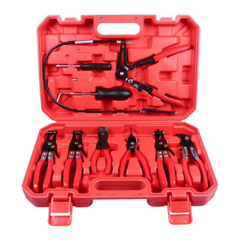 9Pcs Hose Clamp Ring Plier Clip Set Flexible Cable Plier Swivel Jaw Tool Remover Allows for extra reach, removal and locking of clamps into open position. Allows for removal of plastic and/or metal self-tightening hose clamps with diameters of 11/16" - 2-1/2" (18mm-54mm). Precision clamp on end of flexible cable allows for extended reach where other models cannot reach. Pliers can be locked, freeing up your hands and making your job easier and faster. Cable and spring are wearable items and must be replaced. Contents: 1PC Hose Clamp Pliers 1PC Swivel Jaw Spring Wire Clip Pliers 1PC Swivel Jaw Band Clip Pliers 1PC Angled Flat Band Hose Clamp Pliers 1PC Hose Remover Pliers 1PC Clic-R Collar Pliers 1PC Flat Band Hose Clamp Pliers 1PC Screwdriver 1PC hose remover eBay Cross Border Trade powered by ChannelEffect