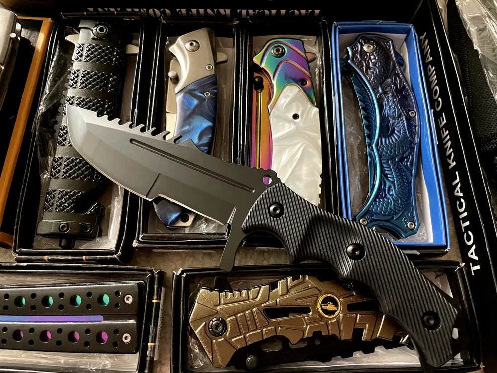 Lot of 9 mixed knives, including hunting, tactical, folding, pocket, fixed blade, survival, and EDC knives. These knives come in various brands and styles, making them a great choice for collectors, resellers, outdoor enthusiasts, or anyone looking to expand their knife collection. All knives are NEW and in GOOD condition, ensuring quality and reliability. Each knife in this lot typically costs between $20 to $30 , offering excellent value for anyone looking to save money on premium knives. Whether you're into camping, hunting, fishing, self-defense, survival, or everyday carry (EDC) , this set has something for you. This is a great deal for anyone looking to resell, start a collection, or stock up on quality knives. Fast shipping ensures you'll receive your knives quickly. Sold as-is with no returns. Don’t miss out—grab this knife lot before it's gone!