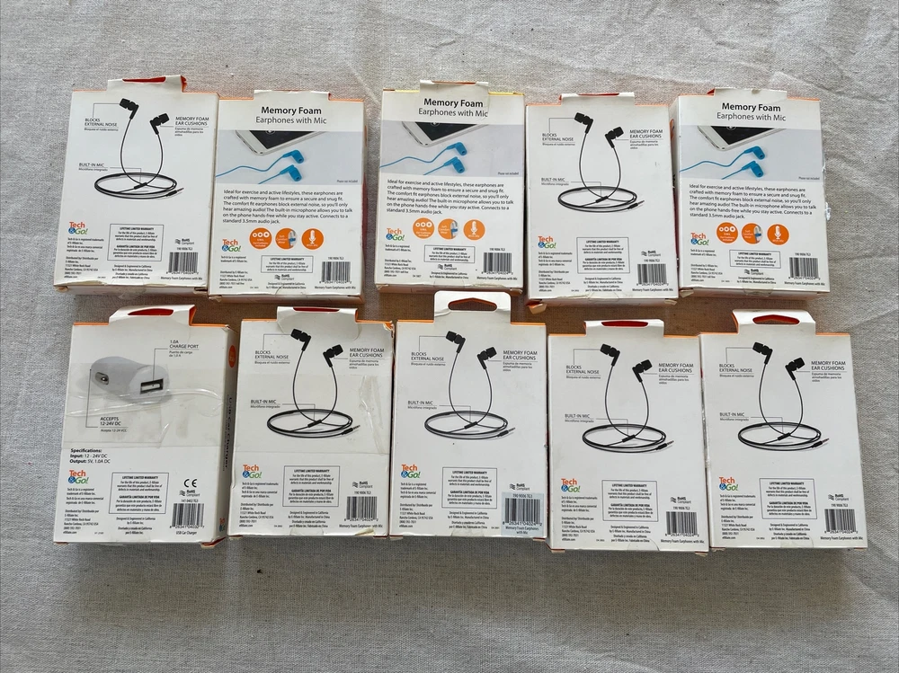 9Pk-Memory Foam Earphones with Mic Sorted color+One Usb Car Charger