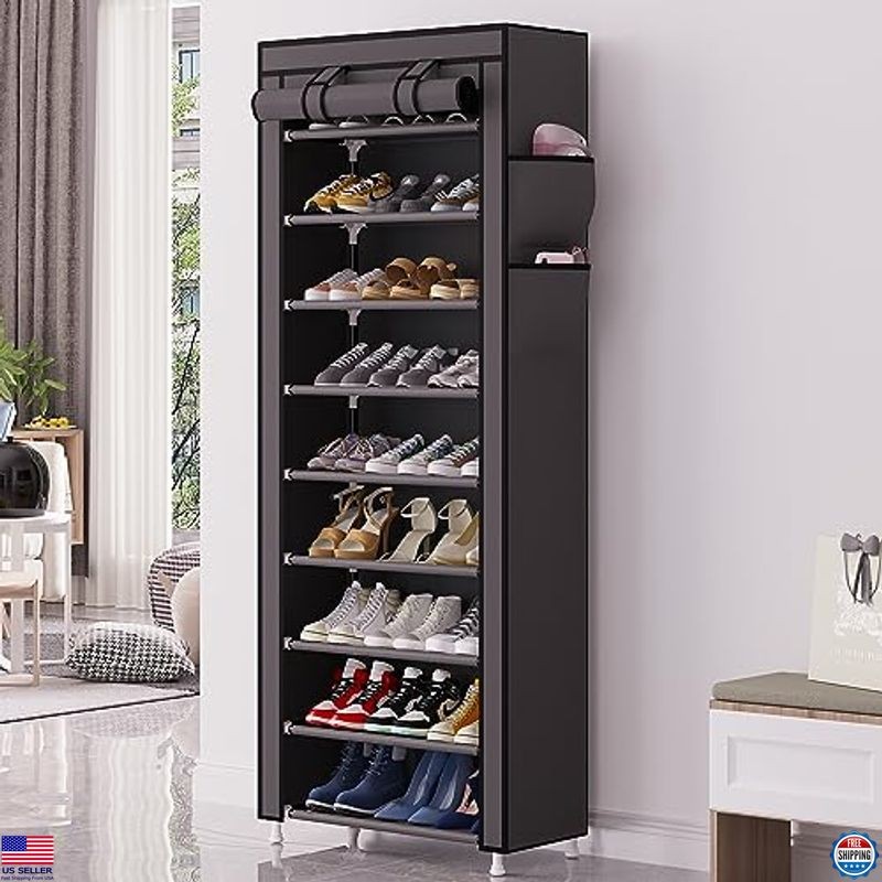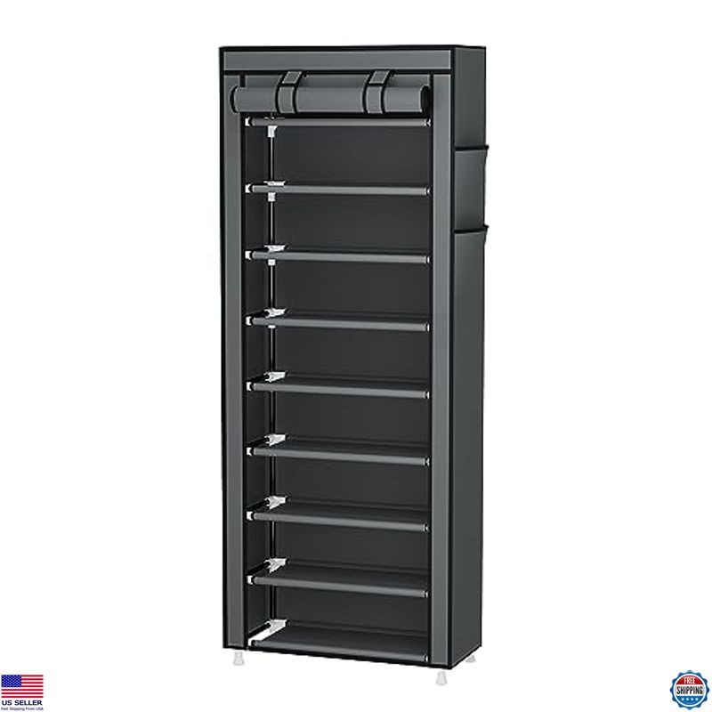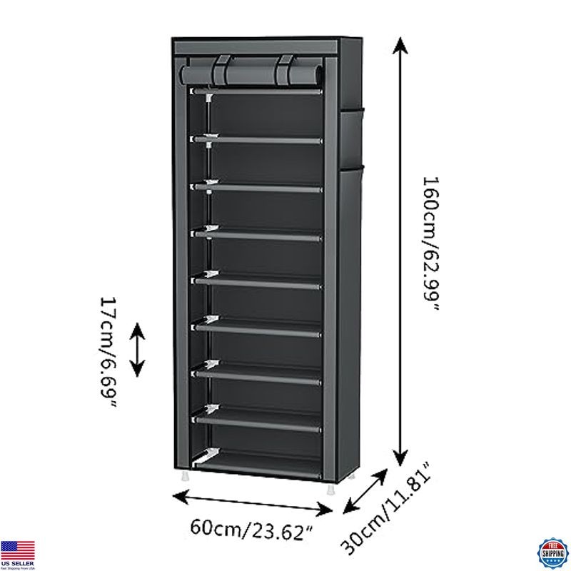 Calmootey 9 Tier Shoe Rack Organizer,Portable Shoe Shelf with Nonwoven Fabric Cover for Closet Hallway,Bedroom,Entryway,Grey Description Organize your footwear effortlessly with the Calmootey 10-Tier Shoe Rack, designed to keep your entryway, hallway, or garage tidy and stylish. With the capacity to hold up to 27 pairs of shoes, this versatile rack features removable tiers for customizing space to accommodate everything from heels to long boots. Its sturdy metal construction and dustproof cover ensure your shoes remain clean and protected. Transform clutter into order with this functional and chic shoe storage solution! Product reference: B0B6ZWHXXJ. Features 【PRACTICAL】- This shoe rack is great for keeping entrances, hallways, utility rooms, apartments, or garages neat and tidy. Make your home organized and refuse to be a mess. 【HOLDS A LOT】- Keep your shoes in order and are easy to access with this 23.62"L x 11.81" W x 62.99"H shoe rack. It's spacious enough to fit up to 27 pairs of shoes. 【STACKABLE & ADJUSTABLE】- It can be stacked to fully organize your shoes, or you can remove a row as needed to accommodate different kinds of shoes, such as long rain boots and high heels. 【DUSTPROOF COVER】- The freestanding shoe rack's cloth cover has a double row of zippers that both close and unfold to keep out dust and keep your shoes clean. 【EASY TO ASSEMBLE】- The package comes with instructions, and no additional tools are required. Please pay attention to the metal edges when assembling to prevent scratches. Shipping Free & Fast Shipping: We offer free shipping to most of the USA with a normal delivery time of 3-7 days. However, due to the current situation, additional delivery time (up to 3 weeks) may be required for some items. Alternative Carriers: We may use alternative carriers (e.g., USPS, FedEx, UPS) to ensure your package arrives safely and on time. Due to the use of multiple carriers, we are unable to provide a tracking number automatically. Handling Time: Orders are processed and shipped within 1-2 business days of receiving cleared payment. Shipping Restrictions: Shipping to Alaska, Hawaii, Puerto Rico, Guam, and other US territories may incur shipping charges or delivery restrictions. Please contact us before ordering, or your order can be refunded/cancelled. State Restrictions: Certain items may not be shipped to California due to state regulations. Contact for Tracking Updates: If you require tracking updates or have any concerns about the delivery of your order, please feel free to contact us, and we will be happy to assist you. Return Policy 30-Day Hassle-Free Returns: If you are not completely satisfied with your purchase, you can return the item for free within 30 days of receiving it for a full refund or exchange. Easy Return Process: Contact us, and we will provide you with a prepaid return shipping label and detailed instructions. No Restocking Fee: There are no restocking fees for returns. However, the buyer is responsible for return shipping costs if the return is not due to a seller's error. Refund Processing: Refunds will be processed within 1 business day of receiving the returned item in its original condition. Payment We accept all major credit cards, PayPal, and Pay for your convenience. Your payment information is secure and encrypted to ensure a safe and seamless transaction. Please complete your payment within 3 days of purchase to avoid any delays in shipping. Feedback Your feedback is extremely important to us. We strive to provide the best products and customer service possible. If ...