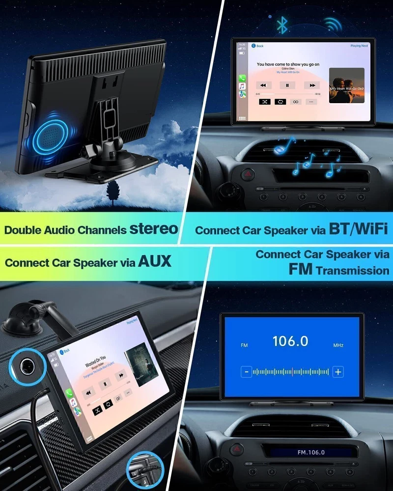 8" Portable Car Stereo Radio Wireless Apple Carplay/Android Auto Touchscreen GPS 52.99 USD Free shipping 9.26" 4K Front Dash Cam Portable Wireless Apple Carplay Android Auto Car Stereo 105.29 USD Free shipping 2024 Upgrade 2 in 1 Wireless CarPlay Adapter Android Auto Wireless Adapter Box 37.19 USD Free shipping 9.26" Touch Screen Car Stereo Radio For Wireless Apple Carplay/Android Auto GPS 59.99 USD Free shipping Wireless Car Stereo Apple Carplay with 2.5K Dash Cam+1080P Camera GPS Navigation 90.99 USD Free shipping 9"2.5K Dash Cam Car Stereo Radio Wireless Apple Carplay&Android Auto+Rear Camera 99.21 USD Free shipping 2in1 Universal Wireless Adapter for Apple Android Auto Carplay WiFi Plug & Play 35.79 USD Free shipping Wireless Carplay Adapter USB Dongle Plug & Play For Apple Carplay Android Auto 35.59 USD Free shipping 2 in 1 Android Auto Wireless Adapter Wireless CarPlay Adapter Plug Play Radio 34.19 USD Free shipping 2 IN 1 Wireless Carplay Android Auto Adapter, USB Type C Plug & Play Car Dongle 36.99 USD Free shipping 9 Inch Wireless Car Stereo with Apple Carplay,Portable Touch Screen GPS Navigation for Car,Car Audio Receivers with Bluetooth,Android Auto,Airplay,AUX/FM,Screen for All Vehicles US STOCK! Fast Delivery, Fast Received! Specific dimensions of this product: 22cm x 13.6cm x 2.4cm Things to know before buying: 1. To use Android Auto, Google Pixels phone needs to be Android 8.0 or above. For Android phones from other brands, the system needs to be Android 11 or above. 2.Wireless Bluetooth play function only supports IOS system. 3. Wireless Mirror Link only supports IOS system. The one good is you can move from car to car . A great solution to not having CarPlay in an older vehicle. Great alternative for expensive radio with Apple Carplay. Portable Wireless for Apple Carplay and Android Auto are easy to install, saving you money and time. GPS navigation: Users can purchase offline navigation directly from the Play Store. Connect to wifi, use Google Maps perfectly, you can go wherever you want, and never get lost again Wireless Carplay: The wireless Carplay in-vehicle system can closely integrate the user's iOS device and iOS experience with the dashboard system. Users who use Carplay can connect to the car system through a data cable to achieve voice-controlled navigation, make calls, send and receive messages, and listen to music. Wirless Android auto: The wired Android auto car system can closely integrate the user's Android phone and player, and realize navigation, make calls, send and receive information, listen to music and other operations through data cable connection; About this item đ ăWireless Apple Carplay & Android Autoă This wireless carplay car stereo support Apple CarPlay & Android Auto. You can simply get into your car and your Smartphone will automatically connect to the apple car play. With wireless CarPlay screen, you can access your smartphone's apps, maps, music, videos, and other features, as well as use Siri or Google Assistant voice to control the Car play screen. so you can focus on the road, keep your hands on the wheel, and drive safely ! đ ăWireless Apple Airplay & 9-Inch HD Touch Screenă You need to connect your iPhone and Carplay to the same Wi-Fi network, select SmartScreen in screen mirroring in the iPhone control center, and play Youtube, TikTok, and other videos on the car play screen. This portable carplay screen features a resolution of 1024*600 9-inch HD touch screen and supports 1080P video playback. Even outdoors or on trips, you can enjoy the high-definition large-screen video experience. đ ăBuilt-In Mic & Support Siri/Google Voice Assistantă The universal carplay built-in clear mic allows you to answer the phone while driving, without having to hold your phone all the time. You can Send voice commands to access Siri/Google Assistant, such as "play music", "GPS Navigation", "send message" or "make phone calls" and more, very easy to use. đ ăOnline Maps & Real-time GPS Navigationă The real-time map information is enlarged and displayed on the apple carplay screen, GPS Navigator can use map applications such as Google Maps, Waze, and more. Compared to traditional navigators, GPS navigators for cars can navigate in real-time with the mobile phone map, and sync the latest smartphoneâs GPS navigation at any time, with no need for frequent updates. The 9 Inches HD IPS display can bring a more intuitive visual. 8-core high-definition 9-inch IPS capacitive screen running fast radio player, 1024*600 high resolution 5G WIFI : Connect WIFI, you will find a new world, stronger anti-interference ability, more stable Wifi wireless signal, and faster transmission speed FM radio : Online music can be transmitted to the car stereo through FM to enjoy the original car stereo, high-end radio chip, powerful noise reduction, and anti-interference ability, support FM function, clear channel and low noise Steering wheel control: through it, you can control the functions you need through the steering wheel, which is more convenient Split screen function: two pages can be displayed at the same time, such as navigation and music display at the same time Adjustable volume and screen brightness: Manual adjustment on the car play Mobile phone mirror link: IOS mirror link Image mirror: Turn on/off Screensaver: Turn off/1 min/5 min Wallpaper: support Driving Posting: Left Rudder/ Right Rudder Protable Apple Carplay & Android Auto Other Feature Intelligent voice can directly control the player to open and close the mobile phone, open and close navigation, make calls and other functions through the voice, so as to better liberate your hands and realize safe driving Built-in A2DP/Hands Free/Phone book Bluetooth, automatic loading of the phone book, compared with the previous version, the speed is faster and the channel capacity is larger Notice: Only support IOS system Support 12-24V voltage, cigarette lighter power supply, suitable for almost all kinds of