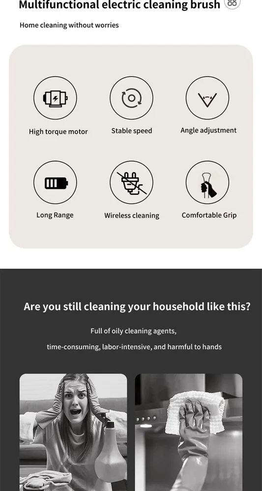 9 in 1 Electric Cleaning Brush Electric Spin Cleaning Scrubber Electric Cleaning Tools parlour Kitchen Bathroom Cleaning Gadgets Features: 1. With digital display: LED digital display, always pay attention to the battery level. 2. Powerful: Strong magnetic motor, high torque, non burning, high power. 3. Simple operation: Electric operation saves time and effort, freeing hands. 4. Humanized design: Scalable design, cleaning without bending down, making cleaning more convenient. 5. Multipurpose: Suitable for flooring, furniture, bathroom, kitchen, car, interior, etc. Specifications: Function: mopping/cleaning/washing dishes Product category: Cleaning brush Material: Plastic Package List: Electric cleaning brush * 1