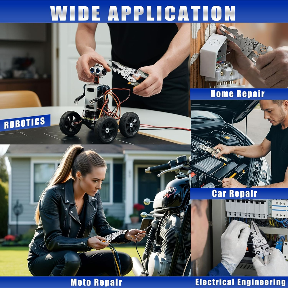 Store New Arrivals Add to Favorite View Feedback Contact Multi-Function Wire Stripper Tool Electrical, 9-In-1 Wire Cutter & Wire Crimping Tool, Adjustable AWG 6-16, Comfortable Grip and Refined Craftsmanship Description Item model number wire stripper-001 Item Package Quantity 1 Batteries Required? No Color Grey Brand FASIUCHOI Material Stainless Steel Country of Origin China Grip Type Rubber Item Weight 6.2 ounces Handle Material Rubber Batteries Included? No Product Dimensions 8.66"L x 2.28"W Manufacturer FASIUCHOI 【Meet FASIUCHOI】Your new friend in the toolbox! This premium multi-functional wire stripper is designed by durability and value. Whether tackling professional electrical work, home repairs, or indulging in DIY craftsmanship, this wire stripper crimper is ready to take on any challenge with a smile 【Built Tough To Last】With an innovative built-in spring mechanism and secure lock for safety and convenience, this stainless-steel wire cutter offers rust-free and sturdy performance. The thickened blade offers precise cutting, delivering clean strips and crimped connections, great for both professionals and beginners 【All-in-one Tool】This wire tool is just like a mini-toolbox in your hand, including stripping, cutting, crimping, twisting wires, and more, in addition to screwing and cutting screws, nails, or steel bars. The exceptional grip and versatile pliers make it easier for users to pull and wind wire with less effort and get the job done in seconds 【Comfortable Grip】This wire stripper tool features a soft, rubber grip handle designed for ultimate comfort and control. No more fumbling around when you need to squeeze and snip, you will get a firm grip that feels just superb and allows you for easy one-handed operation 【What You Get】We stand by the quality of FASIUCHOI with dedicated customer support and a commitment to your satisfaction. Should you encounter any issues, our team is here to assist you, ensuring that your experience with our multifunctional tool is nothing short of exceptional Product Description STRIPPING WIRES Accurate wire stripping, adapting to large cable sizes and choosing the right wire gauge: 6/8/10/12/14/16 AWG SNIPPING WIRES Strong cutting force and neat fracture, suitable for wire, steel wire rope, fine wire and copper wire WIRE SHARPENER This cutter cuts away the insulation on the outside of the wire WIRE CRIMPER Crimp a variety of electrical terminals, connecting cables, plugs and terminals between the wires in the circuit to play a role in the connection and fixed PLIERS' NOSE The strong-gripping serrated nose is used to grip, twist, bend, shape and pull wires to fulfill the function of an electrician's pliers or wire cutters NON-THREADING SCREW CUTTING Shear-type inserts cleanly cut M3/M3.5/M4/M4.5/M5 screws SPLITTING WIRES Splitter function allows splitting of sheathed wires WRENCHING Added wrench function for m8/m10 nuts WIDE APPLICATION This versatile pliers is ideal for professional electricians, technicians, and daily maintenance. It's a reliable tool for various tasks, including installing light fixtures, replacing switches, building electronic robots, and repairing vehicles. A must-have for both professionals and DIYers. ABOUT US We offer the best prices around on high quality products. Our E-store includes media such as books, movies, music and games while offering electronics, toys, sporting apparel, clothing, tools, general home, garden items and more. SHIPPING We are always working hard to ensure your package arrives as soon as possible. Please understand that some factors like weather, high postal traffic, and the performance of shipping companies are outside of our control. We offer free shipping to the lower 48 states and ship within 2 business days of payment, usually sooner. We do not accept P.O. Boxes. Please provide a physical address. RETURNS We offer a 30-Day Return Policy on items which you are not completely satisfied with. You have the option for a full-refund or an exchange of the item. No returns are available on items shipped outside of the USA. PAYMENT We accept PayPal. CONTACT US This page content is yet to come Please ad us to your favorite seller and visit again later Thank You CUSTOMER SATISFACTION We try our very best to make sure every customer is completely satisfied. If there's a problem, message us! We're happy to help.