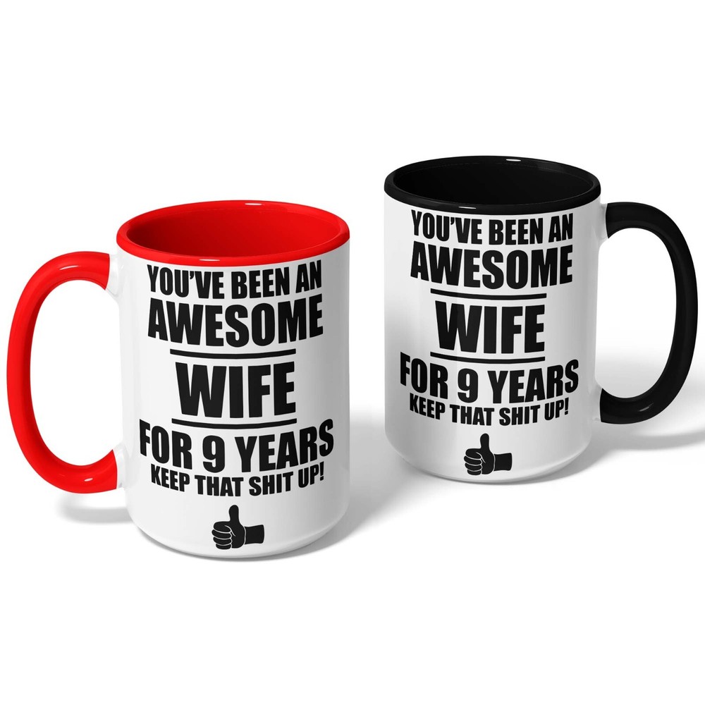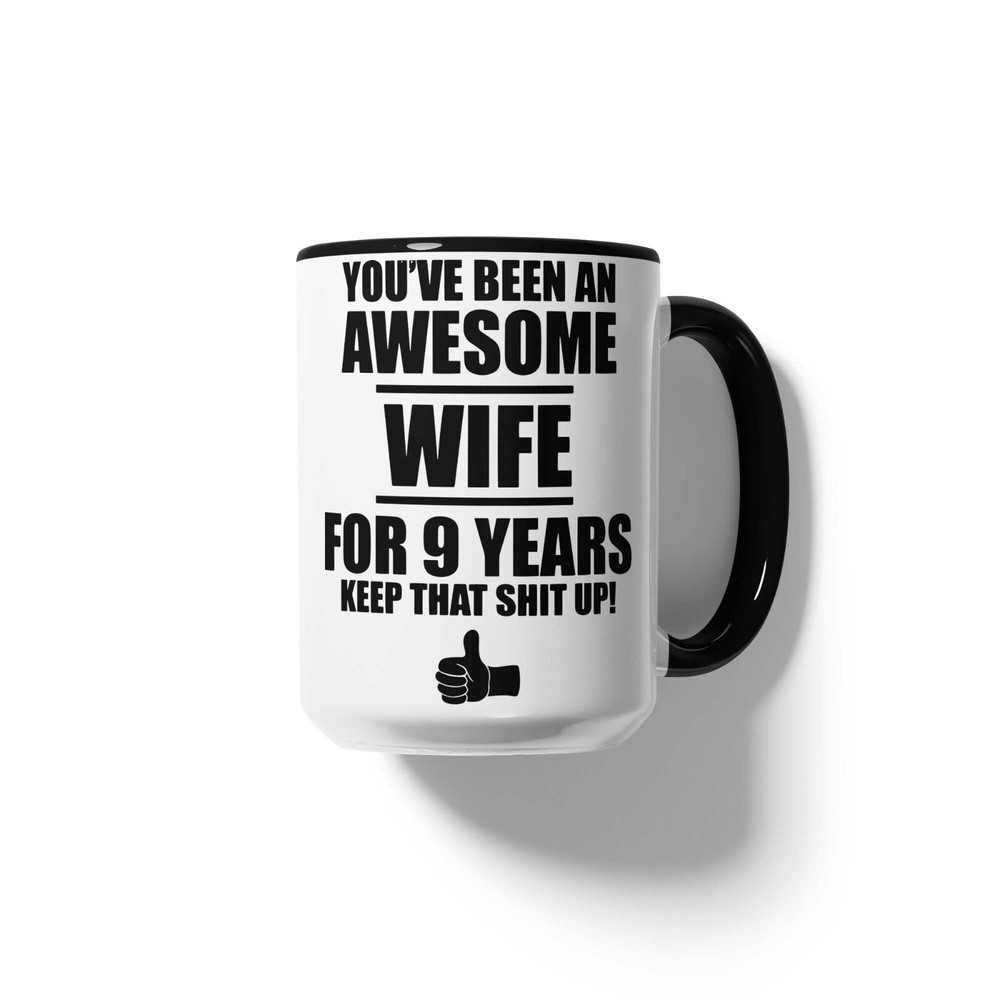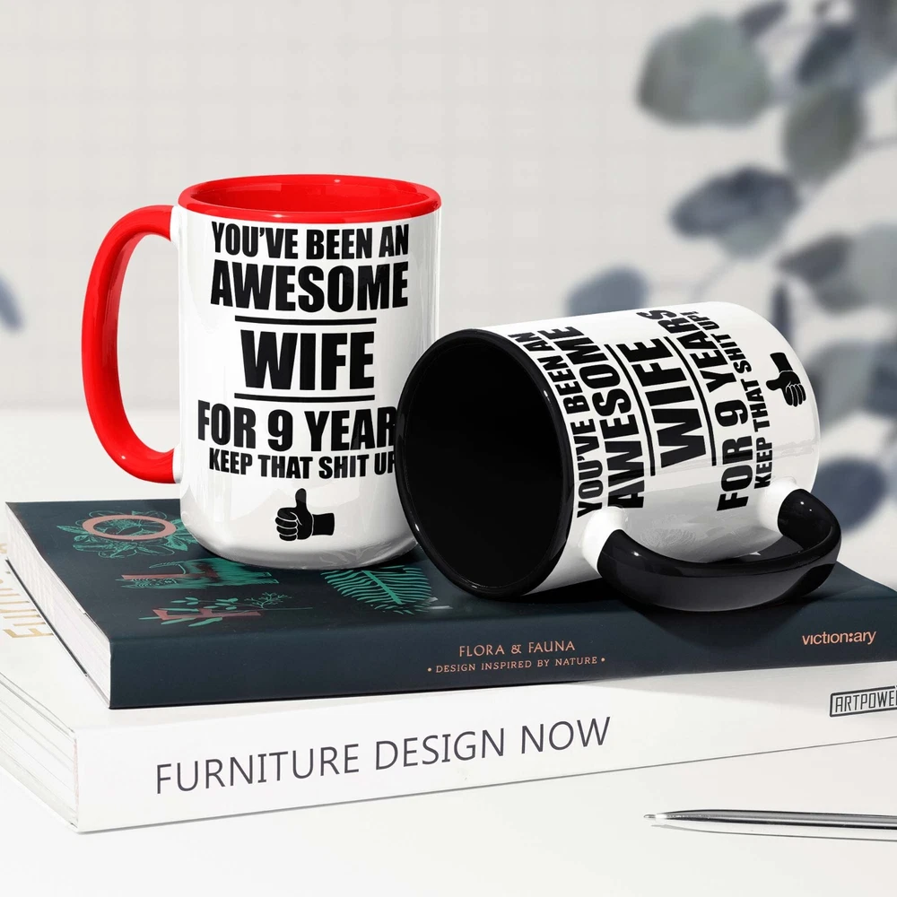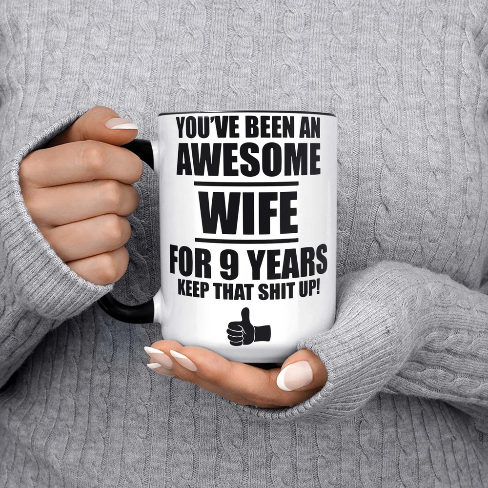 This 9th Anniversary Gift For Wife Mug Coffee Cup is a novelty coffee mug with a capacity of 11oz, made of ceramic and designed in white color. With a height of 3.75 inches and a width of 3.14 inches, this unique and personalized gift for your wife's 9th wedding anniversary is perfect for celebrating this special milestone. Proudly manufactured in the United States, this mug is not only a practical kitchen item but also a thoughtful and sentimental present to show your love and appreciation.