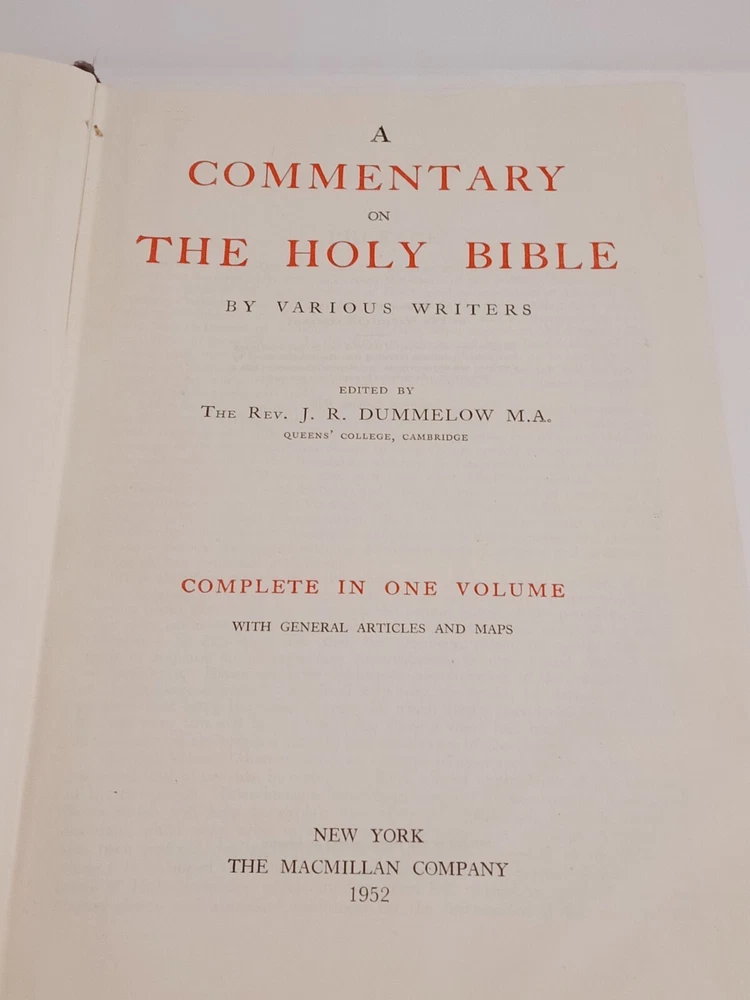 This hardcover book titled "A Commentary on The Holy Bible" is a valuable addition to any collection. Edited by Rev. J. R. Dummelow in 1961, it provides a detailed commentary on the Bible's Christianity section. The book is in English and has been published by The MacMillan in New York. The book's aspects include a hardcover binding, North American region, and United States as the country of manufacture. It falls under the categories of Books & Magazines and Antiquarian & Collectible. The book is a must-have for those interested in religion and spirituality, and it is a rare find for collectors.
