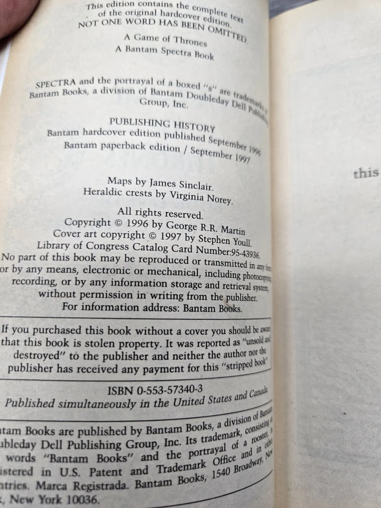 A Game Of Thrones 1st Print Edition 1997 Paperback