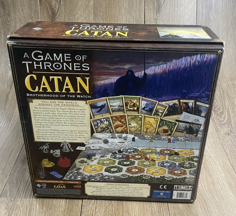 A Game Of Thrones Catan Brotherhood Of The Watch Strategy Board Game. By our observations, the item is in good condition. There is some wear to the game and its box. There is some minor wear to the cardboard game pieces. There is some minor wear to the plastic game pieces. One of the wilding pieces is white instead of gray. There is some wear to the corners to the game's box. One the front of the box there is a scratch/tear to the top of one of its edges. There are a few scuff marks to the front of the box. There are some scuff marks to the back edges of the box. There are few creases and nicks to the sides of the box. On one of the side of the game's box some of the picture has been torn off and retaped. To the best of our knowledge, all of the game piece are accounted for. See picture gallery for more information. Thank you for viewing this listing. We are a thrift shop located in Peachtree City, Georgia and all of our profits are returned to our community. We make every effort to test all electronic equipment that we receive and closely examine everything else which we will describe in detail if needed. If you have any questions, please message us directly and we would be more than happy to answer any of them.