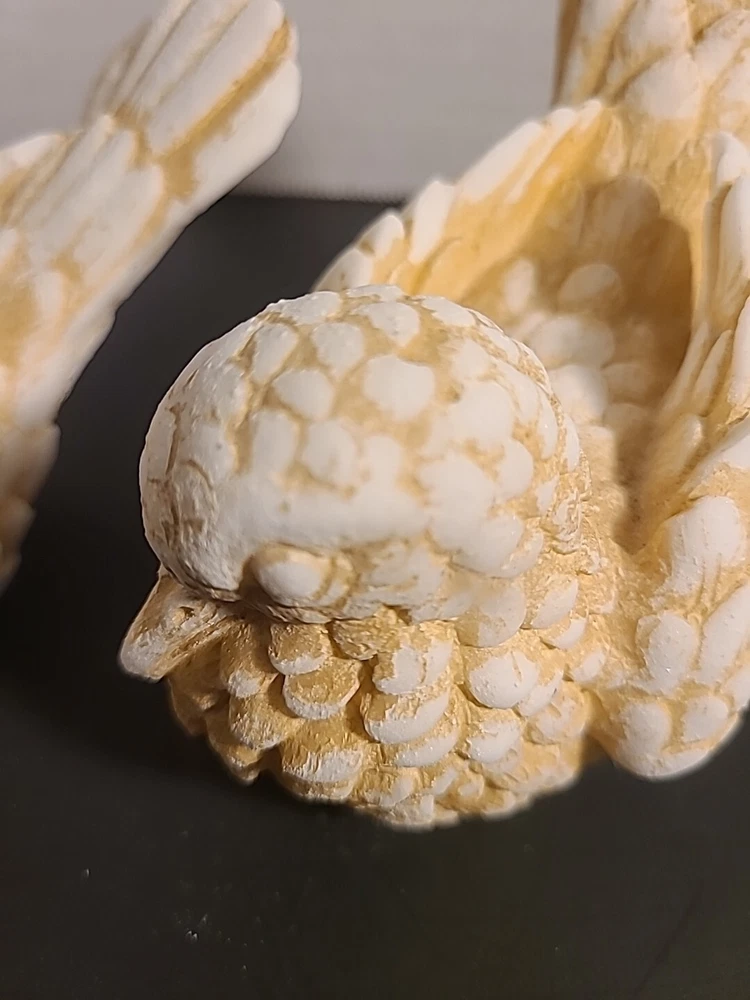 This exquisite figurine is a stunning piece by A. Santini, an Italian artist known for his masterful alabaster sculptures. The Dove Sculptures by Classic Figure is an original piece that showcases the artist's exceptional talent and attention to detail. Made in Italy, this figurine is a true work of art that will add elegance and sophistication to any collection. The dove subject adds a touch of serenity and beauty to the piece, making it a perfect addition to any room or display. Sime sand debris