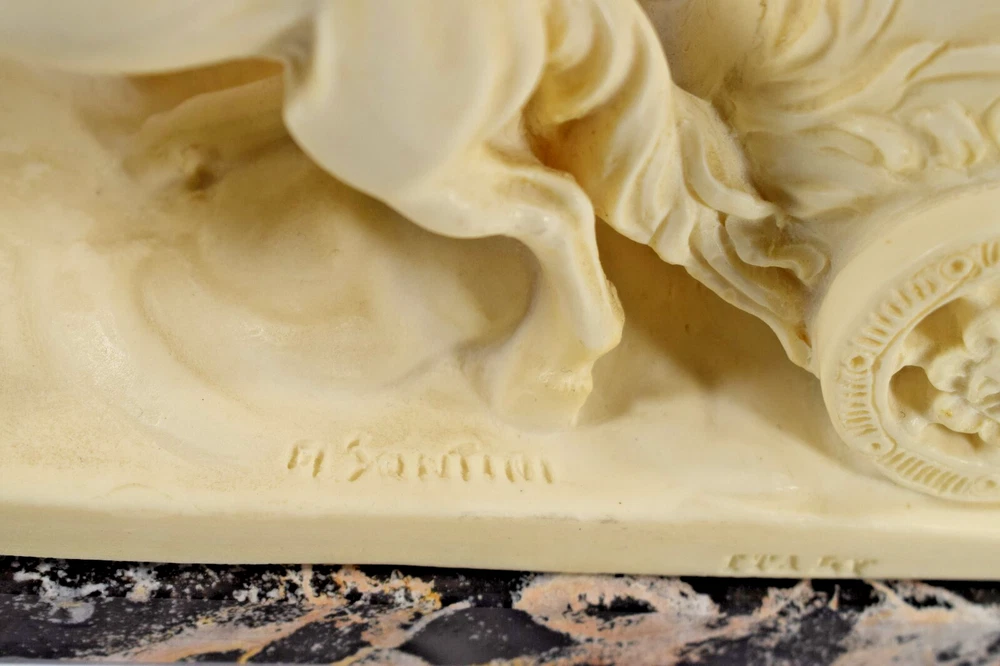 Signed:YesItem Height:5.5 inUPC:Does not applyFormat:StatueStyle:Greek RomanCountry of Origin:ItalyArtist:A. SantiniProduction Technique:Carvinggtin13:Does not applyItem Length:8 inItem Width:2.5Custom Bundle:NoUnit of Sale:Single PieceSubject:Figures, HorseCertificate of Authenticity (COA):NoSeller Notes:“Very good”Type:SculptureOriginal/Licensed Reproduction:OriginalMaterial:Alabaster, ResinRegion of Origin:EuropeSize:Medium