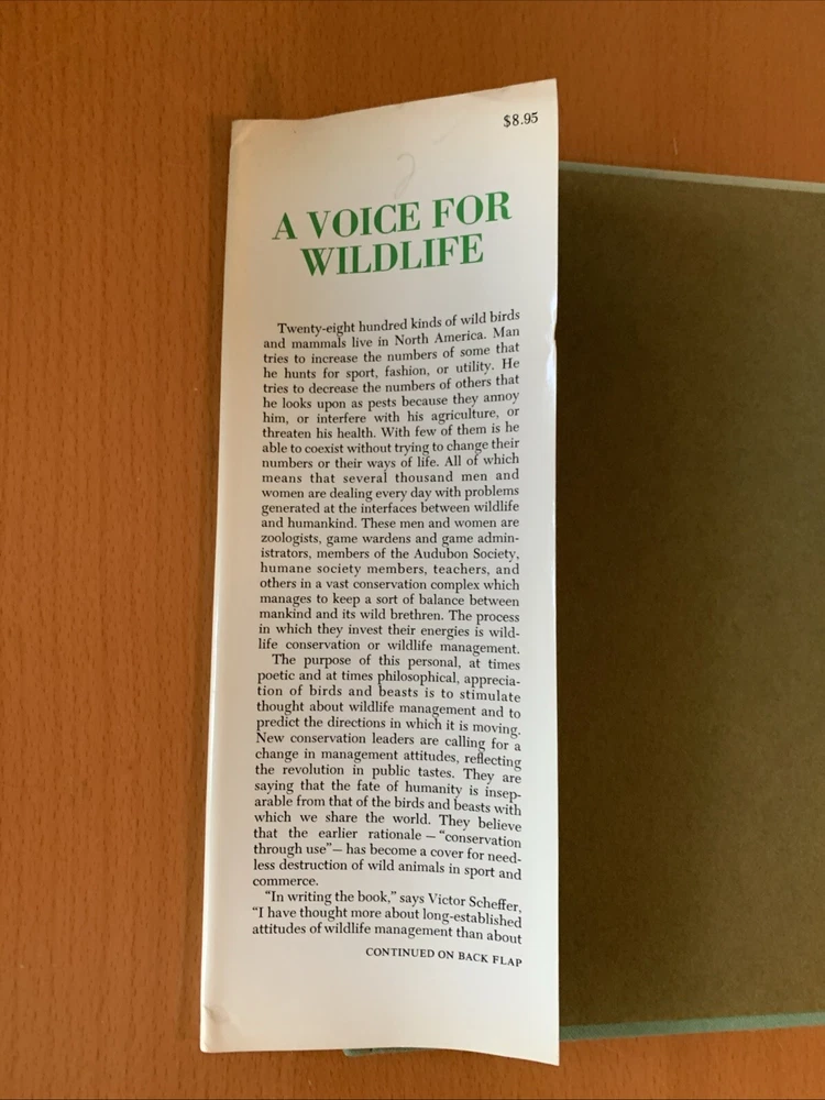 This amazing book titled "A Voice for Wildlife" by Victor B. Scheffer is a must-have for any nature enthusiast. Published in 1974 by Scribner, this hardcover book is a comprehensive guide to outdoor and nature conservation. Featuring 245 pages of insightful content, this nonfiction book is a great addition to any collection. The book is illustrated by the author himself and is written in English. It is perfect for those who want to learn more about environmental conservation and protection. This product is made in the United States and comes with free shipping.