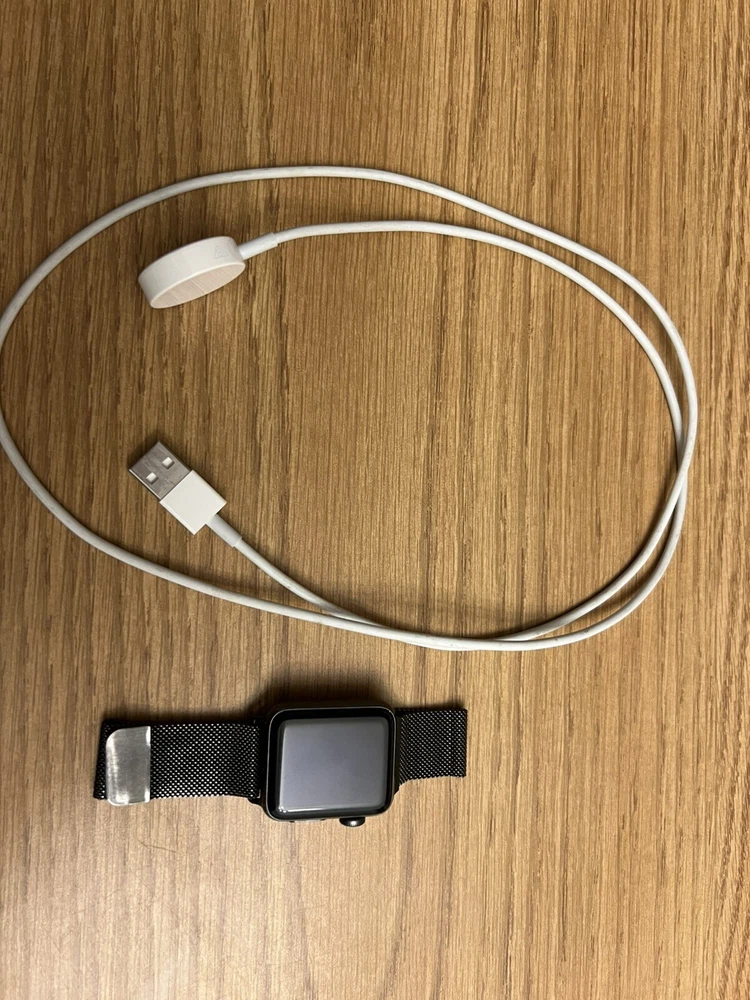 Apple Watch Series 3 LTE Cellular 38mm Space Gray with Milanese Loop & Charger by Apple. This smart watch features 4G and 3G data capabilities, an accelerometer, and 8GB storage capacity. It runs on Apple Watch OS and is compatible with iOS devices. The case is made of aluminum, and the Milanese band is black aluminum. Slick and stylish sure to draw the crowd’s attention. Perfect for anyone looking to get a gift or upgrade their current phone set up! Will also include a charger cable. Buyer adds flat fee for shipping and handling