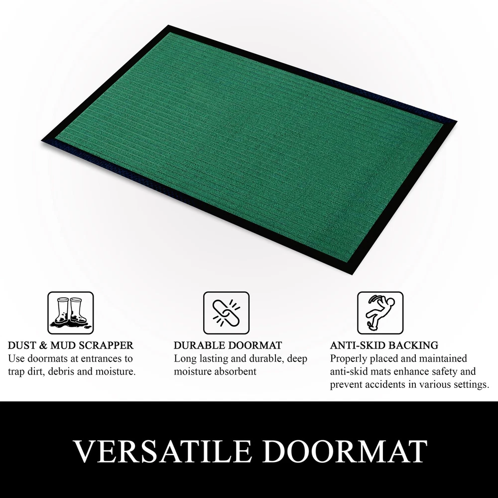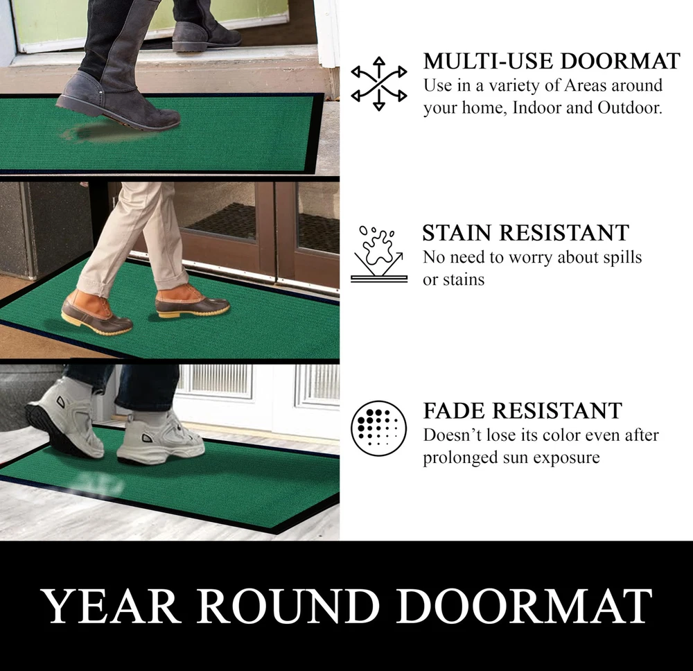 Elevate your entrance with A1HC Polypropylene rubber door mat: Its formidable dirt trapper, super absorbent, and keeps floors clean and safe. The perfect welcome mat for your front door. Dirt-Catcher & Fade-Resistant: The deep grooves of this outdoor mat efficiently trap dirt, mud, and moisture from shoes, helping to keep your floors clean and protected. Crafted with fade-resistant materials, this heavy duty door mat retains its color and appearance even after prolonged sun exposure. Non-Slip Backing & Durability: This doormat features a non-slip natural recycled rubber backing for superior traction, preventing slipping. Designed with high tensile strength, it is tear-resistant and built to withstand heavy foot traffic. The robust pet fiber face is crafted with grooves and durable geometric and floral patterns, ensuring long-lasting performance and resilience. Perfect mat for indoor or outdoor use, this doormat offers both functionality and style. Multi Purpose Mat: Measures 32 inches long x 48 inches wide, Ideal for an outdoor or indoor entrance mat, patio mat, garage mat, garden mat, or winter mat, Kitchen mat, Office mat, Hallway mat, Laundry Room mat providing durable protection for floors against dirt, moisture, and debris in high-traffic areas. Eco-friendly and Pet Friendly: Our mat, made from high-quality Polypropylene, withstands all weather, dries quickly, and retains vibrant colors. Use it as a boot mat, shoe mat, entry mat, or patio mat for reliable protection and cleanliness indoors or outdoors.The material is likely scratch-resistant or durable enough to withstand pet claws. Effortless Maintenance: Keep your entryway mat fresh and clean with ease. Sweep or vacuum regularly, shake off debris, rinse with a garden hose outdoors,for hassle-free cleaning. Enjoy a consistently tidy entrance without the hassle.