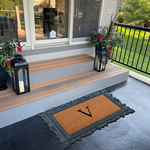 Like all of our door mats, our Monogrammed Coco Door Mat is as durable as it is beautiful. Handmade from 100% coir, an all-natural material known for its scrubbing power and resistance to the elements. Dyes saturate the fibers for vibrant color. Specify you single-letter monogram for the perfect finishing touch, or enjoy the classic border motif alone NEWLY DEVELOPED RUBBER AND COIR MONOGRAMMED DOOR MAT : This is a completely newly designed door mat, suitable for both single and double doors. The large size monogrammed door mat is made of Natural Coir fiber and high quality rubber. This coir door mat has a large coir area to clean and wipe your shoes which keeps your house clean. Molded door mats are stronger and more durable lasting thrice as long as regular door mats. Each outdoor rug is QC inspected for 20 quality check points. NATURAL COIR PILE MONOGRAMMED FRONT DOOR MAT: This Door mat is made from 100% natural coir fibers which are of the strongest fibers and they naturally trap dust and other particles. The biodegradable coir fiber material is environmentally friendly and compostable. HEAVY DOOR MAT WITH RUBBER BACKING: This Doormat is heavy weight with a solid rubber backing. This door mat doesn’t get easily blown away by wind and anchors to the ground to prevent slipping. ATTRACTIVE DESIGN AND ANTI SHED TREATED FRONT DOOR MAT: This is a personalized designed door mat and every door mat is Hand monogrammed individually in the USA. The coir portion of this door mat is treated with Anti Shed dyes to minimize shedding. The rubber molded doormat easily lasts 3 times longer than usual doormats since the rubber adds to the durability making it suitable for high traffic areas. LOW MAINTENANCE OUTDOOR MAT: Coconut coir is naturally resistant to unwanted substance, making this the most low-maintenance door mat possible.