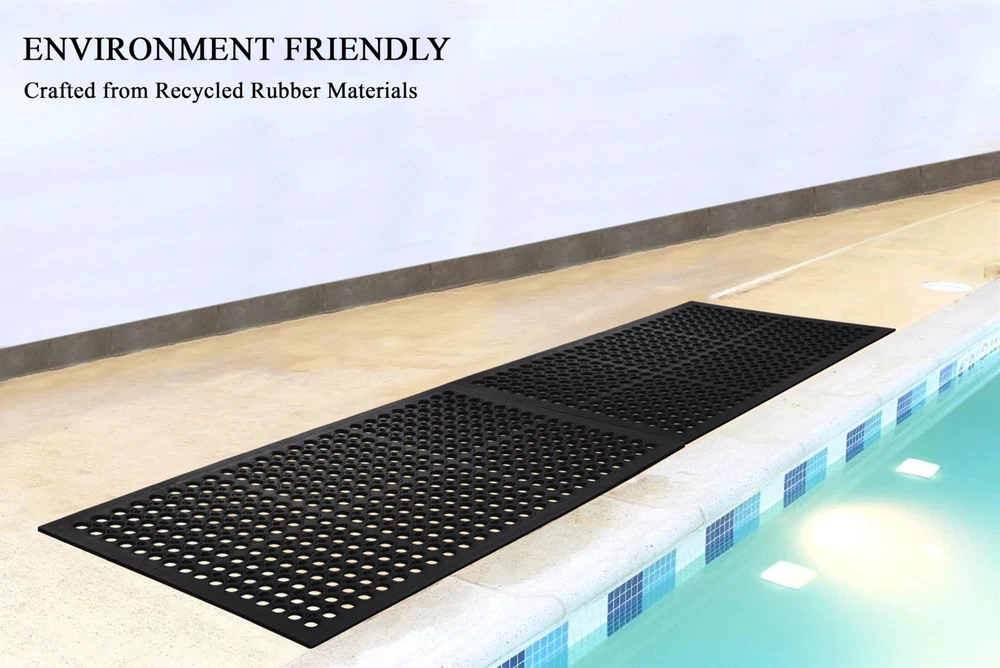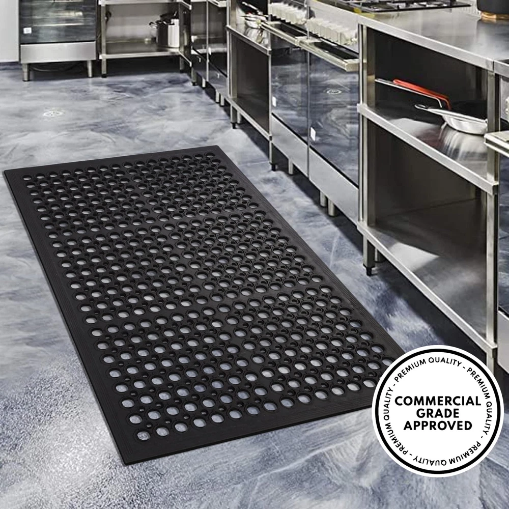 Upgrade your standing experience with A1HC Rubber Anti-Fatigue Mat for Kitchen, Restaurant, Business, and Industrial areas. Enjoy long-lasting comfort and relief indoors or outdoors. Functionality, durability, and style for clean, safe, and sophisticated entryways. Enjoy long-lasting comfort and relief. Heavy-Duty Commercial Mat: Our rugged heavy duty rubber floor mat stands up to the toughest conditions, perfect for high-traffic areas.With excellent durability, it's an ideal commercial doormat, able to handle water, snow, salt, and slush. Drainage-Optimized Commercial Kitchen Mat: Engineered with drainage holes, this mat ensures quick drying - a non-negotiable for any commercial kitchen mat. Keep your cooking space clean, safe, and hygienic. Anti Fatigue Versatile Mat: The thoughtful design makes this provides relief during long standing tasks making it ideal for a wide range of settings including restaurant mats, kitchen mats, gym mats, bar mats, and more, ensuring dependable performance in diverse environments. Whether you need a robust bar mat or a safety-oriented gym mat, our rubber floor mat adapts to your business requirements with ease. All-Weather Performance: Whether indoors or outdoors, this rubber utility mat is perfect for any type of flooring, from entryway Rubber Floor mats and garage mats to laundry room mats and patio mats. This mat effectively cleans off shoes and traps dirt and debris with its perforated hole design. Durable and Slip Resistant: Crafted for long-lasting use, this rubber mat is built to withstand daily wear and tear, ensuring reliable performance over time. It also features a slip-resistant design for added safety, providing stability and traction in high-traffic areas.