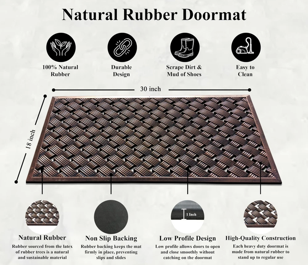 This mat is made of durable, eco-friendly rubber for an elegant effect, this chic mat is A1HC exclusive and makes any entrance a grand entrance. For use indoors or in covered outdoor areas, this is a perfect addition to your home. MATERIAL AND LOW-PROFILE DESIGN: Our home doormat have large number of rubber pin on the surface. it is designed to be durable and sturdy, yet soft.The Low profile doormat measures 18x30" and is 1/2" thick,the door will open easily so forget about curling or getting stuck. CAPTURE DIRT AND EASY TO CLEAN: Funny designs and raised edges help this multifunctional mat catch dirt more effectively,removes debris better than other outdoor mats.This doormat helps to scrap off dirt,dust, grit, mud, sand,grass or snow and absorb moisture from shoe.The doormat indoor entrance can be cleaned quickly,just spray water over the outdoor rugs to get cleaned or by hand with a vacuum cleaner. DURABLE AND NON-SLIP BACKING: The outdoor doormats for entrance way outdoors has a powerful eco-friendly natural non skid rubber which prevents moisture leaks, that is safe for your floor ,and Our door mats will be remained in high-traffic areas, ensure a safety using.Our durable mat can be used for much longer time. UNIQUE PATTERN AND GREAT GIFT: The funny doormat is not fade and long lasting,rustic decorative design make your home or office feel friendly and welcoming.The welcome doormat is the perfect housewarming gift and a great holiday gift ideal for friends and family. INSIDE OUTSIDE WIDELY USE: Heavy duty entrance rug can be widely used be used as an indoor outdoor mat home doormat front door mat and shoe cleaning mat outdoor rug welcome mat farmhouse mat entrance mat kitchen rug garage floor mat dirty dog doormat pet mat and patio rug or as a entrance rug back, for door laundry living room lobby office patio business driveway and many more common areas.