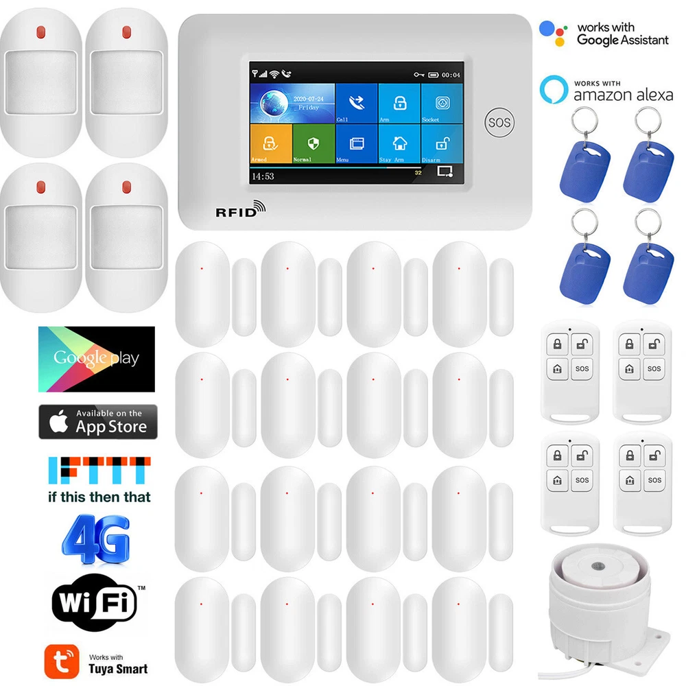 The advantage of 4G alarm system. Following the official closure announcement of 2G networks in United States, Canada, Mexico, Australia, Euro Union, etc. Worldwide cellular mobile network prvoides are considering ceasing 2G service with in-progress plans in coming years. Without 2G networks, 2G/GSM only alarm system will fail to achieve it's major function, remote control through calls and SMS. To provide customers with longer alarm system lifespan, our company is launching a series of it's 4G alarm system which are both 4G/3G/2G(GSM) Network compatible. Applicable Area US 4G alarm system work on United States, Canada, Mexico.(If use in USA, suggest use AT&T, T-mobile 4G Sim card). Euro 4G alarm system work on Euro Union, United Kingdom and other EU countries, Africa, Asia. 4G+WiFi Tuya Home Alarm System Description Payment Shipping Return Policy Feedback Contact Us Description The advantage of 4G alarm system. Because Australia, United States, Canada has cut the 2G sim card service. And United Kingdom, Mexico, Euro Union, ect will cut the 2G sim card in coming years. Without 2G networks, 2G/GSM only alarm system will fail to achieve it's major function, remote control through calls and SMS. To provide customers with longer alarm system lifespan, our company is launching a series of it's 4G alarm system which are both 4G/3G/2G(GSM) Network compatible. The 4G alarm system will work with United States, Australia, United Kingdom, Euro Union, Canada, Mexico, and most countries' 4G Sim card(Except China, Japan and Korea). The 4G alarm system support use 4G sim card to receive SMS message or phone call to remote control the alarm system(2G alarm system not support sim card function). This listed alarm system offers 2 models of 4G sim card module. 1. Alarm system with the most suitable module(1 out of 2) will be shipped based on shipping address unless otherwise requested. 2. For cost saving purpose, you may need 4G Sim Card which only comes with voice and SMS plan(data subscription not required). 3. Sim Card module in each model supports frequencies and ONLY requires you 4G network to work on one of the frequency. Applicable Area USA/Australia 4G alarm system work on United States, Australia, Canada, Mexico, South American, North American. Euro 4G alarm system work on Euro Union, United Kingdom and other Euro countries, Africa, Asia(except China, Japan and Korea). Package Including:(ALL sensor's battery included) 4G+WiFi Main Panel * 1 Pcs (Support Connect Amazon Alexa, Google Assistant, IFTTT, etc) Wireless PIR Infrared Detector * 4 Pcs Wireless Door / Windows Sensor * 16 Pcs Wireless Remote Control Key * 4 Pcs RFID Tags * 4 Pcs Wired Siren * 1 Pcs(110dB) Built-in Siren * 1 Pcs(85dB, the siren is built-in main panel) USB Adapter * 1 Pcs English User Manuel * 1 Pcs (NOT Including Sim Card) Frequently Qustion & Answer: Q: What kind of Sim Card support? A: The alarm system is 4G version, it support 4G+3G+2G(GSM) Sim Card, the sim card detailed I have writed in the description. Q: Can this alarm system work with Amazon Alexa or Google Home? A: Compatible with Alexa and Google home: This alarm sysetm works with Amazon Alexa and Google Home for voice control ( Alexa and google home devices not included ). Just ask app Alexa on your phone to Arm / Disarm/ the whole system in a specific instruction like "Alexa, please arm the alarm system". Remote control your Alarm system anywhere in the world with your smart cell phone, no need repeated operation! Q: Can this alarm system work with WIFI and 4G Sim Card together? So if the WIFI failure, can switch Sim Card mode to work. A:Yes. User can connect alarm system with WIFI and 4G Sim Card to work. And when Alarm System be triggered, it will push alarm message to the APP via WIFI. And if the WIFI failure, will change Sim Card mode auto Dial Out. Q: It just with WIFI in my house and without 4G Sim Card,can I use this alarm system? A: Yes. Alarm System can work in WIFI mode only. The alarm system only support 2.4G WiFi, NOT support 5G WiFi. Q: Can I add additional remote controllers, door sensors, pir sensors, smoke detectors, gas detectors or other sensors to work with this alarm system? A: Yes. Alarm system can work up to 99 wireless sensors(wireless freq 433MHz) and wireless Siren, unlimited Wifi Camera. Q: Does the alarm panel with backup battery? A: Yes. Alarm system with internal rechargeable backup battery. It can support work when AC Adapt is cut. Q: What's the function of RFID Tags? A: It used to touch the main panel to arm or disarm soon and easily. Main Function And Feature: 1. 4.3 inch TFT display screen, concise user interface and menu hint design 2. Main interface status bar, date/clock indication, fairly obvious alarm host status. 3. Built-in powerful performance CPU master based on 32-bit Cortex-M3 core 4. Based on u cos C III operating system with multitasking design, great user operation experience 5. WiFi/4G/3G/2G(GSM)/GPRS intranet alarm system, support different alarm channels, like APP push/SMS/voice monitoring/intranet center etc. to ensure the alarm performance stable and reliable 6. Support SMS arm/disarm and voice arm/disarm 7. Support up to 100 learning/storage location for remote control, RFID cards and wireless detector 8. Support many defense zones, such as gate, SOS, bedroom, window, balcony, perimeter, smoke, gas, carbon monoxide, water leaking, etc. 9. Support the main power malfunction, backup power shortage, tamper alarm and other extended alarm. 10 .Support entry/exit zone, indoor zone, perimeter zone, 24-hour zone, etc 11. Up to 5 groups preset alarm phone numbers, SMS on/off and dial on/off can be set respectively 12. Support external wireless siren, Support timing arm and disarm 13. Can store and inquire daily operation records and alarm records. 14. GSM network clock synchronization, to ensure accurate color, and support country time zone setting. 15. Support multi-language menu display, voice prompts and alarm SMS set
