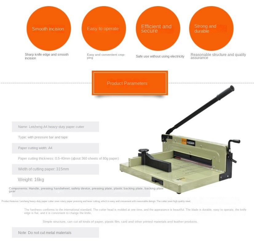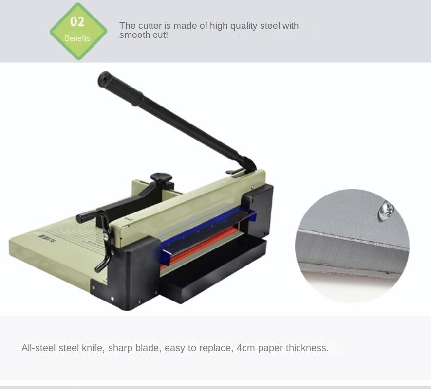 This A4 paper cutter is a game-changer! Super sharp blade makes clean cuts through thick stacks effortlessly. The sturdy metal base keeps it stable, and the safety lock adds peace of mind. Perfect for offices, crafters, and anyone who needs precise cuts every time. Super easy to use and lasts forever - totally worth the investment!