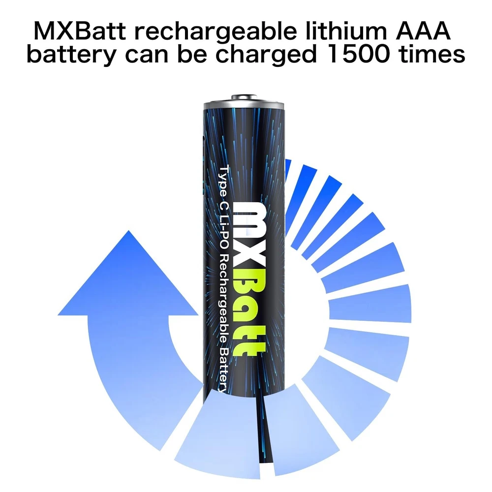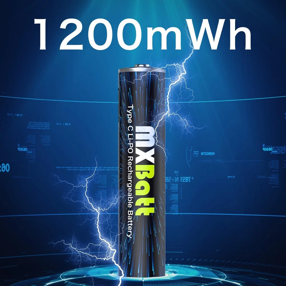AAA Rechargeable Battery USB C 1.5V 1200mWh High Capacity,Rechargeable AAA Batteries Lithium 6-Pack with USB C Port Cable 1500 Cycles Product Details Size: LD-USB-6AAA Brand: MXBatt UPC: 753775359995 EAN: 0753775359995 MPN: Does not apply Number of Batteries: 6 AAA batteries required. Brand: MXBatt Battery Cell Composition: Lithium Polymer Compatible Phone Models: NO Recommended Uses For Product: Flashlights, Camera, Clock Package Dimensions: 4.25 x 3.86 x 0.87 inches Item Weight: 2.39 ounces Batteries: 6 AAA batteries required. Date First Available: July 18, 2023 Manufacturer: Delipow Country of Origin: China 1200mWh AAA Rechargeable Batteries: MXBatt aaa rechargeable battery usb c 1200mWh high capacity can offer at least 30% longer time than other AAA batteries, All of MXBatt rechargeable batteries are pre-charged, ready to use once received Direct USB-C Charging: New design with USB C Port on the AAA batteries, easily to charge, and they are powered up quickly when you are on the go, at work, home or traveling 1.5V Constant Voltage : The MXBatt rechargeable aaa batteries lithium ion are suitable for equipment with strict voltage devices. Charged AA lithium batteries maintain 1.5V under 100% to 0% capacitance Low Self Discharge:The use of MXBatt aaa rechargeable battery 1.5V can be charged 1500 times, energy saving fully charged can be stored for one and two months Attentive Service : If you have problem with our product , please feel free to contact us , we will reply you in 24 hours and provide you a 100% satisfactory solution