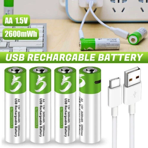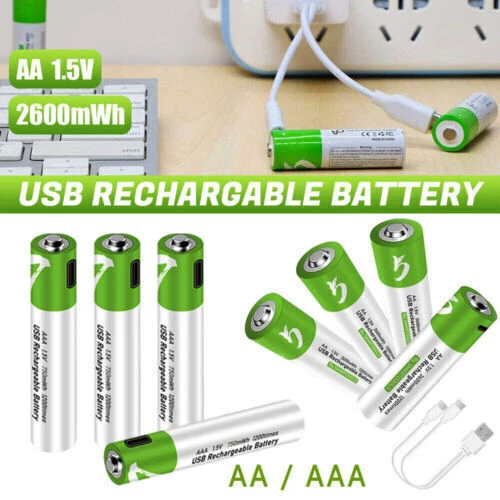 Product Description Features *SWITCH TO RECHARGEABLE: Stop wasting money on standard alkaline batteries! Switch to our rechargeable lithium batteries for the same great performance. Reuse the batteries repeatedly. Be eco-friendlier and more cost-effective * Type C USB CHARGING: Directly plug a Type C USB into the input for quick and easy charging. Use the included cable to connect connect 1 batteries to any USB power supply. Connect to an AC adapter, power bank or computer, and fully charge in around 1.5 hours. Long lifecycle will allow over a 1200 uses * LED INDICATORS: When charging, the red LED will blinks and will then LED remains on once it is fully charged. Conveniently see the charging status of each battery *LARGE CAPACITY: High capacity provides sufficient power for a wide range of products. Perfect for controller, keyboard, mouse, toys, calculator, toothbrush and much more Specification. Product: AA AAA rechargeable lithium 1.5v batteries - 4-pack Nominal voltage: 1.5V Nominal capacity Ah: AA--2600mwh / AAA--750mwh Scope of application: camera, video camera Charging voltage: 5V Indicator light: flashing when charging, always on when full Battery temperature: -20 ℃ -60 ℃ Protection function: with charge and discharge protection plate Advantages. 1. 1200 times of cycle charging. 2. support TYPE-C cable direct charging, support cell phone chargers, computers, mobile power and other charging methods, without having to buy a traditional charger. 3. 1.5 hours fast charging: using Type-C data cable charging, fully charged in just 1.5 hours, intelligent turn light, no need to have another charger. Package include 4/12pcs Lithium ion Rechargeable Battery 1x usb cable About Us Payment Shipping Terms Contact Us Welcome to my eBay Store. Please add me to your list of favorite sellers and visit often. Thank you for your business. 1.We only accept eBay payments. 2.All payments must be made within 3 days after auction won. 1.Delivery address on ebay . 2.Handle Time: All your orders will process in one to three business day after clear payment . We offer caring customer service and no hassle refunds. If for any reason you feel that you cannot leave positive feedback and 5 star ratings, please contact us within 30 days from the date of order for a return or refund. We are not satisfied until you are. Pursue "better" product quality, "faster" transportation speed, and serve you wholeheartedly!You can enjoy Discount and 30 days free return.Any questions, please contact us by email , we will solve it for you as soon as possible, Enjoy Here! About Us Welcome to my eBay Store. Please add me to your list of favorite sellers and visit often. Thank you for your business. Payment 1.We only accept eBay payments. 2.All payments must be made within 3 days after auction won. Shipping 1.Delivery address on ebay . 2.Handle Time: All your orders will process in one to three business day after clear payment . Terms We offer caring customer service and no hassle refunds. If for any reason you feel that you cannot leave positive feedback and 5 star ratings, please contact us within 30 days from the date of order for a return or refund. We are not satisfied until you are. Contact Us Pursue "better" product quality, "faster" transportation speed, and serve you wholeheartedly!You can enjoy Discount and 30 days free return.Any questions, please contact us by email , we will solve it for you as soon as possible, Enjoy Here! powered by