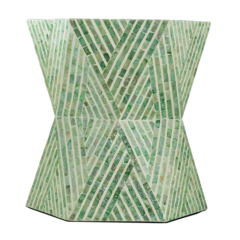 Clean lines and smooth angles exaggerate the geometric charm of this tapered pedestal stool. A Capiz inlay and linear pattern add to the enticing design. Useful on the top and stunning along the sides, this is the perfect accent piece for entryways, bedrooms and living rooms.Capiz inlay accentsVersatile use as a stool or side tableHexagon shapeColor/finish options: Green, BlueMaterial: MDF, CapizSeat dimensions: 19.7 inches high x 19.1 inches wide x 19.1 inches deepDimensions: 19.7 inches high x 19.1 inches wide x 19.1 inches deep Free Shipping Over $49.99* Details A&B Home 20-inch Hexagon Tapered Pedestal Stool Product Description: Clean lines and smooth angles exaggerate the geometric charm of this tapered pedestal stool. A Capiz inlay and linear pattern add to the enticing design. Useful on the top and stunning along the sides, this is the perfect accent piece for entryways, bedrooms and living rooms. Capiz inlay accents Versatile use as a stool or side table Hexagon shape Color/finish optionsGreen, Blue MaterialMDF, Capiz Seat dimensions19.7 inches high x 19.1 inches wide x 19.1 inches deep Dimensions19.7 inches high x 19.1 inches wide x 19.1 inches deep