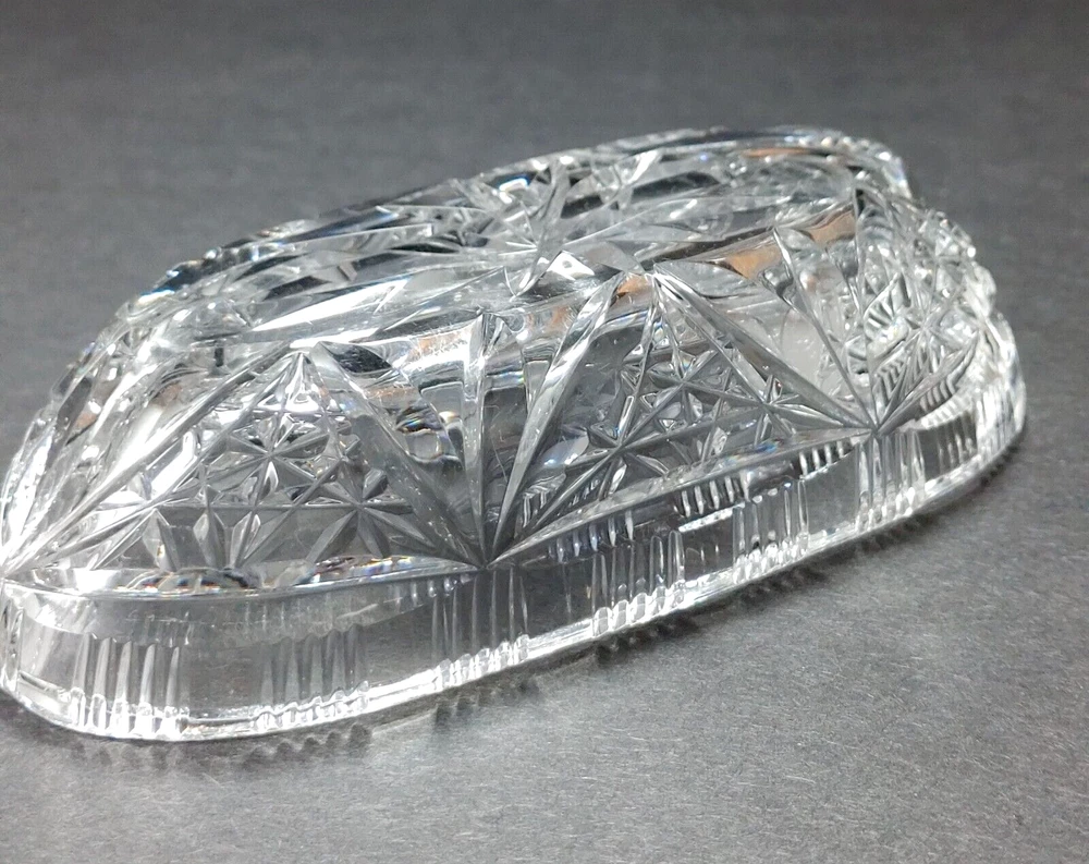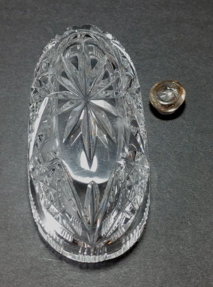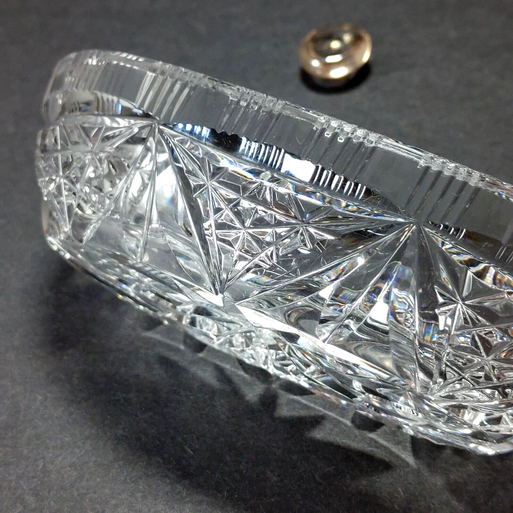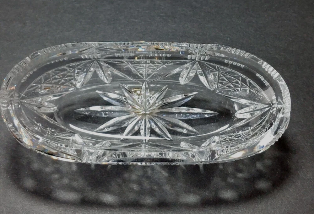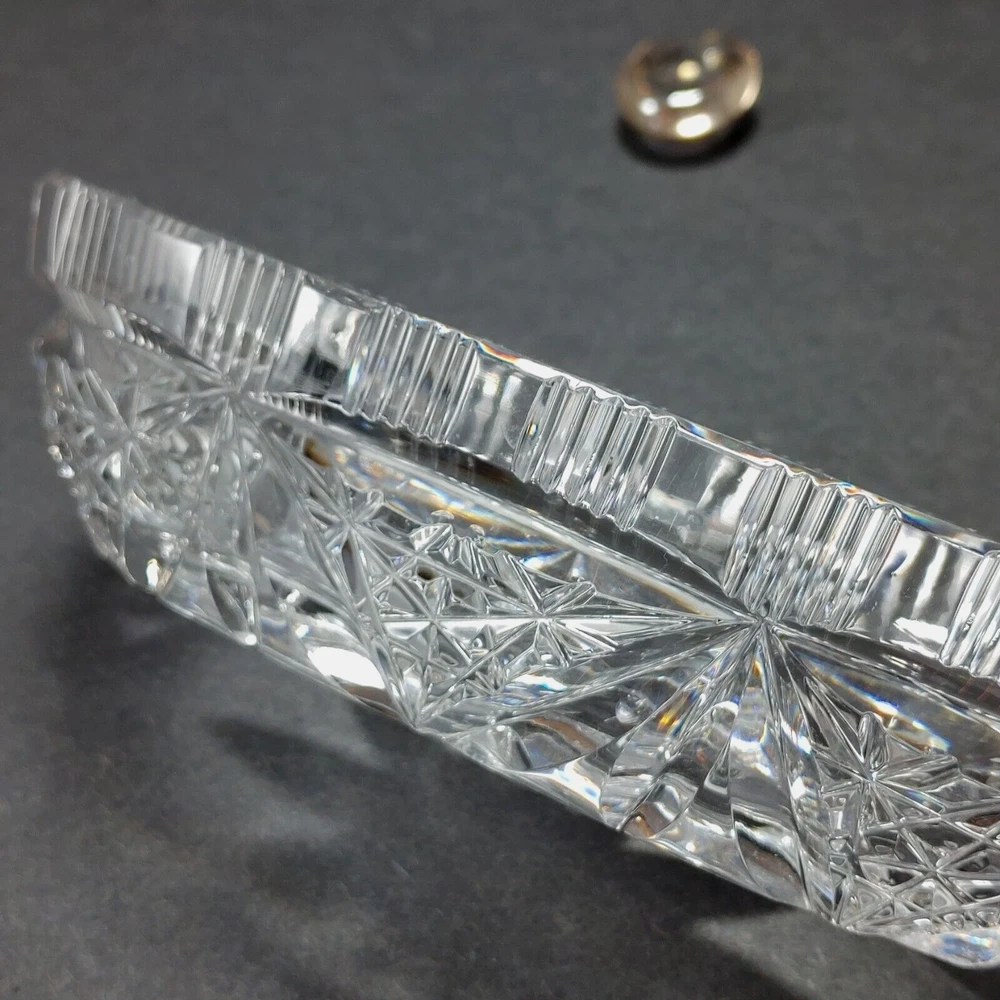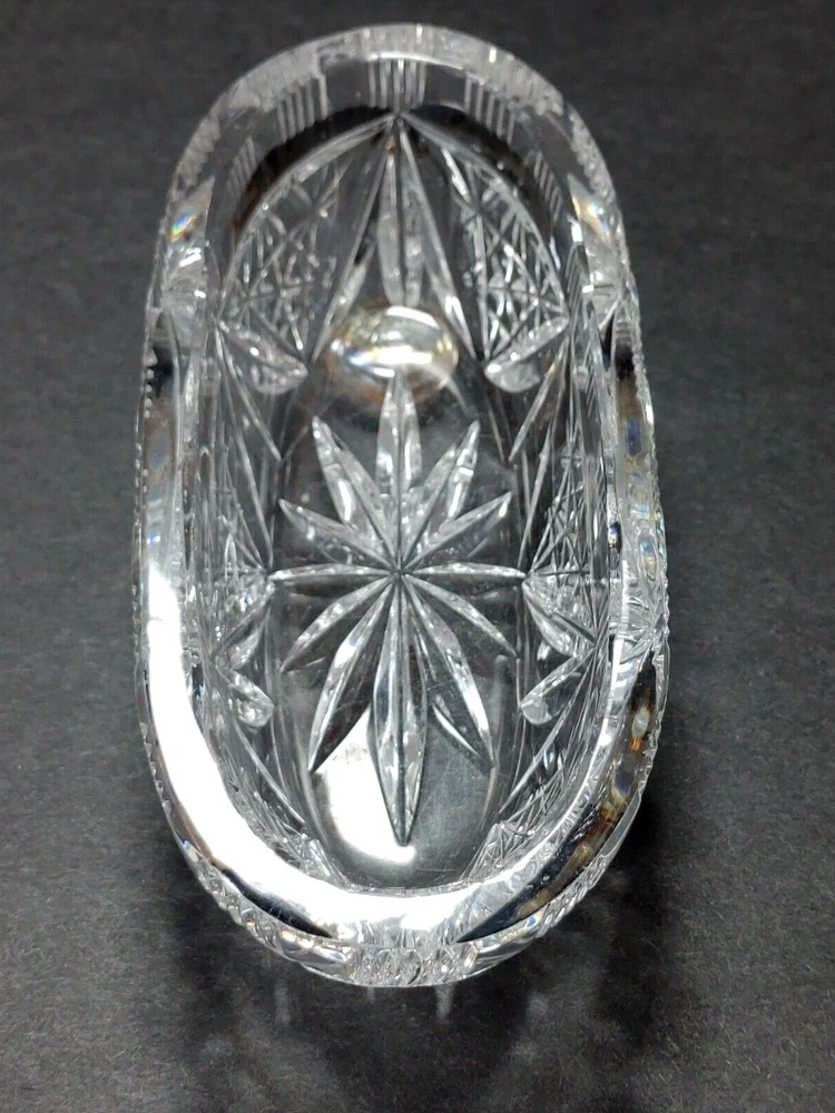 ABP Brilliant Hand Cut Crystal Relish Dish 5-1/4 Inch Diamond Point Star Cut Beautiful antique relish dish. One or two fleabites present. Very sharp cuts to glass. Beautifully detailed rim. There are some surface scratches on the bottom consistent with age of piece. Appx size 5-1/2 x 2-1/2 x 1-5/8" Ships Direct from Canada Thanks for shopping our store . ** Have a Great Day!. Happy Holidays! USA buyers save with currency exchange on purchase.We ship UPS, Canada Post and Fedex as postage requires. Thank you for being a valued customer!