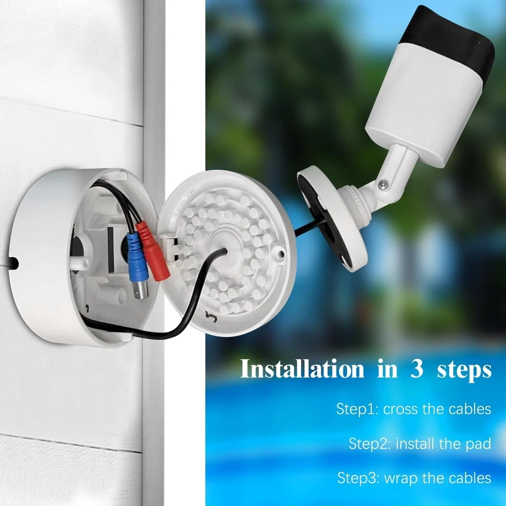 ABS New Security Camera Junction Box,Security Camera Bracket Outdoor,Plastic Waterproof Security Camera Mount Hide Cable Junction Box for Arlo Solar Panel Flip Cover Cable Cover {Innovative Flip Cover Design} One of our core advantages is the unique flip cover design of our security camera mount. This feature sets us apart from the competition, providing added convenience and functionality. The flip cover allows for easy access to the cables and connectors within the security camera junction box. It ensures a seamless and discreet cable management solution, making it a perfect choice for protecting your cables and maintaining a tidy setup. {} Our Security Camera Junction Box is highly versatile and compatible with various camera models, such as the Arlo solar panel and Reo solar panel. This ensures that you can use our universal ip camera mount with multiple camera brackets, including Bullet cameras and solar panel brackets. {Compact & Durable} Crafted from high-quality plastic ABS materials, our security camera bracket outdoor is built to last. It boasts a compact size, measuring Diameter inches and Height inches. This ensures that the junction box is not obtrusive and complements your camera setup seamlessly while providing long-lasting durability and reliable protection. {IP54 Waterproof} This security camera bracket outdoor provides reliable protection against rainy weather. Rest assured that even if water enters the security junction box, it will not affect the normal functioning of your camera. The junction box is specifically designed to neatly conceal the excess wires of your solar panel and camera, making it an ideal choice for both outdoor and indoor use, including interior ceilings. Installing this product is a breeze. {Hidden Cable Management} Our camera junction box offers top and bottom cable passage options, making it extremely effective for concealing cables and connectors. With this feature, you can keep your camera setup neat and organized, minimizing cable exposure. This easy-to-operate and maintain design provides an ideal solution for protecting and managing your cables effectively. Note: This product is primarily designed for use with Bullet cameras and is not suitable for Dome cameras.