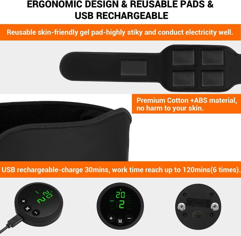 Features : Unisex for Man & Women Anywhere For home gym exercise workout training Remote control by simple button High quality Leather Material. No need extra gel sheets . 30 minutes per day, fast and easy to shape body curve, build a strong figure, Surprise Yourself!! EASY TO USE - POWER ON: Press the "+" button, the indicator lights up. press again Muscle Stimulation Belt begin to work. - POWER OFF: Press the "-" button to decrease the intensity until the blue indicator light turns off. - MODE SWITCHING:Turn on the device and press the "M" button to toggle freely between massage modes. Package - Ab Toning Remote controller - Ab Toning Belt - Extension band * 1 - Instruction Manual Tip: Our Abs workout equipment work by water, which is very economical and environmentally friendly. Two important points: one is that the irritation area must be moist, and the other is that the stimulator must be close to the skin, and there must be no gap between the stimulator and the skin, otherwise there will be discomfort and the effect will not be good. Note: 1. Do not use it when you are sleeping 2. The following people are not allowed to use the product or it may cause accidents, the problems of skin and body. -Internally transplanted electronic medical device, such as pacemakers. -Electronic medical life-support equipment such as artificial cardiopuimonary machine. -Electronic medical devices attached to the body such as electroncardiogram scanner. -Women who are pregnant or give birth to babies recently. In order to help you get in the best shape of your life, our team has designed the ultimate training device: a great choice for those looking for a convenient way to tone, strengthen and firm the abdominal area. This Abs workout equipment can build muscle and massage effect. This belt is designed for both men and women. It also comes with an adjustable strap for your size. The belt is made with solid materials. The upgraded flex belt is a necessity for anyone who wants to keep their abs toned. Abs workout equipment provides ideal workout.It is equipped with an adjustable buckle design, which make it easier to use.This new upgraded powerful dynamics provides stronger sense. Many modes can be useful for exercising the whole body with just one key operation. The Ab workout equipment is designed to help you with your six pack.Concentrating frequency conversion and professional pulse combination can achieve one-button fitness to realize warming up, exercising, relaxing, stretching. 【PACKAGE INCLUDES】-- Abs Toning Belt * 1, Remote Controller * 1, USB Charging Cable * 1, User Manual * 1.Please read instructions carefully before use. ( *DO NOT use the product if you have Allergic skin or an existing cardiac condition, implanted metal devices/screws areas of the body or suffer from epilepsy.)
