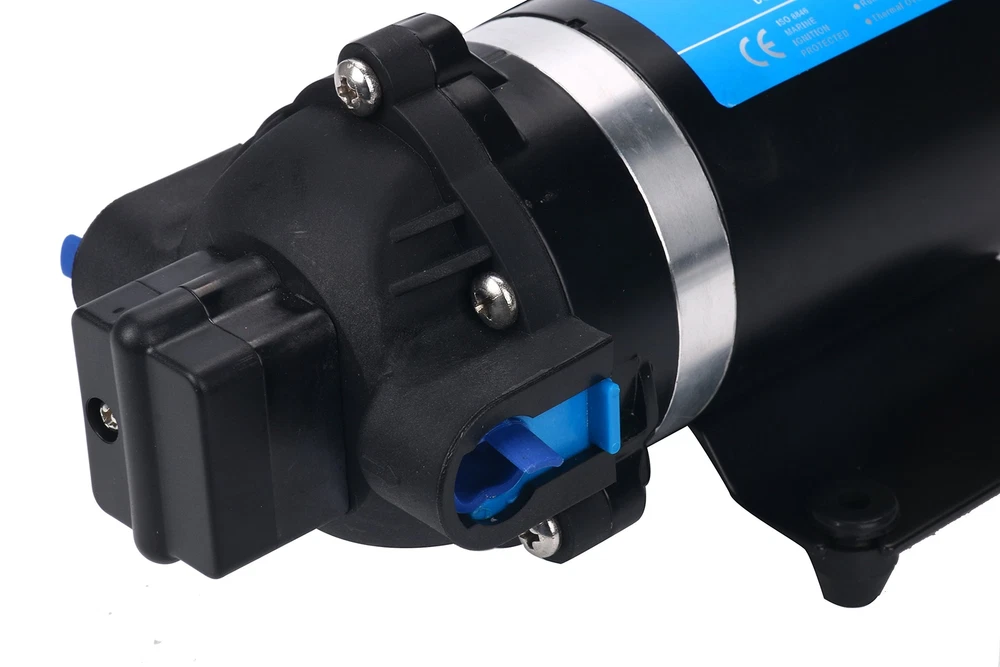 AC110V Self Priming Water Pressure Diaphragm Pump 1.8GPM 7LPM 160PSI For Caravan/RV/Boat/Marine Self-Priming : Allows for usage even if located above water tank. Built-in 160 PSI pressure switch automatically starts and stops the pump when necessary. Rated Flow is 1.8GPM(7 LPM).Long Time Run at Small Flow/Leakage Would Damage Pressure Switch Very Quickly.Please make sure the flow rate you use is more than 60% of the max flow rate, at least 1.2 GPM(4.5LPM) Thermal overload protection automatically stops motor should it overhear due to overload, with auto re-start feature