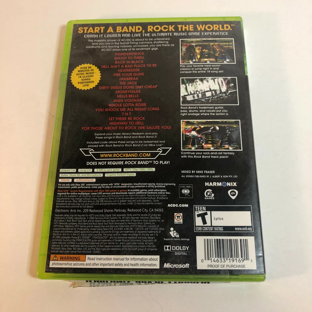 You are buying a USED copy of AC/DC Live: Rock Band Track Pack (Microsoft Xbox 360, 2008). With Manual. Untested. Please read the below Terms and Conditions before bidding, placing an offer or buying an item. By doing any of the three, it will be assumed that you have read the Terms and Conditions . Item Description and Conditions : Please read the item specifics for any details and condition on the item. We are happy to answer any questions, if you have any questions or unsure of anything with the item, please ask before buying or making an offer on an item. Do not ask a question within an offer. Item Packaging : The outside condition of an item (i.e.. the box or other packaging) is not guaranteed. If the item is described as NEW, the item inside is NEW and UNUSED. If there are any blemishes to the packaging, we will do our best to indicate them in the photos. If you have any questions on the packaging, please ask. Payment : Payment is expected within 2 days after the purchase has been made. Reminders will be sent after 24 hours. Items not paid for will be relisted after 48 hours unless the buyer sends a message and requests additional time to make the payment. International Shipping : We offer International Shipping through eBay?s Global Shipping Program. In the listing you should see estimated shipping and import fees. The full and final charges will be available to view at checkout. We do not have any control over import fees or taxes. Combined Shipping : We will combine shipping on multiple items. A combined invoice will be sent for multiple items that have not been paid for. If multiple items are paid for separately, we will refund a portion of the overage. Media Mail : Media items (such as DVDs, CDs, Cassettes, VHS tapes, Books, etc.) are sent Media Mail as indicated in the listing. The option to upgrade to First Class or faster shipping is available either through the listing or by messaging before the purchase to add a more expedited shipping at the buyer?s expense. Shipping : Most items are usually shipped the next business day after payment has been received. Please be aware of any holidays that might impact your shipment. Tracking is sent through eBay after the item has been packed. Returns : We do accept returns, please contact us as soon as possible after receiving the item with any issues. We only accept returns through eBay by the buyer opening a returns case. Feedback : Positive feedback is automatically left after positive feedback is received from the buyer. Be sure to favorite our store for updates!