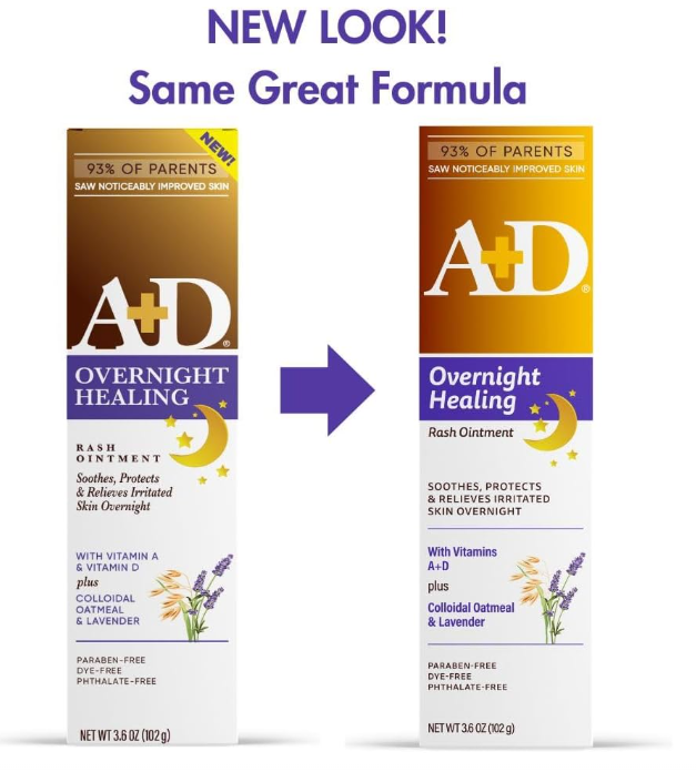 A+D Overnight Healing Diaper Rash Ointment - Soothes, Protects & Relieves Diaper Rash Overnight with Lavender & Colloidal Oatmeal - Healing Ointment for Red, Itchy, Irritated Skin - 3.6oz Brand A+D Item Form Ointment Active Ingredients Petrolatum 47.2% Material Type Free Paraben Free, Dye Free, Phthalate Free Product Benefits Soothing, Relieves Skin Irritation About this item SOOTHES, PROTECTS, & RELIEVES: Unlike other lotions and creams, A+D Overnight Healing Rash Ointment contains Vitamin A & Vitamin D to help heal and moisturize skin and repair and rejuvenate aggravated skin to help your baby wake up with happier skin RELIEVES IRRITATED SKIN OVERNIGHT: Designed to heal overnight. Helps relieve the discomfort of chapped, chafed, and cracked skin so your baby can sleep through the night and wake up in comfort. 93% of parents saw noticeably improved skin in the morning PEDIATRICIAN RECOMMENDED DIAPER RASH OINTMENT: A+D Ointment is pediatrician recommended containing Vitamins A+D, colloidal oatmeal, & lavender. Clinically shown to improve redness, dryness, itching, diaper rash, and irritated skin. Free of parabens, dyes, and phthalates SOOTHING & VERSATILE: This gentle formula is smooth and spreads evenly. Not just for babies with sore bottoms, this ointment can also be used for bums, cheeks, legs, neck, knees, hands, elbows, and feet TRUSTED FOR 80 YEARS: For over 80 years, A+D vitamin enriched formula has been trusted & endorsed by moms, dads, pediatricians, and dermatologists to heal the most sensitive skin. A+D is here to provide your family with more happy skin days . We offer FREE shipping on all orders! . We ship within Five business days of payment, usually sooner. . We use a selection of shipping services such as UPS, FedEx, USPS etc. . We only ship to the lower 48 states, no APO/FPO addresses or PO Boxes allowed. . Local pickups and combined shipping options are not provided at this time. . Your satisfaction is a wonderful reward for our efforts. Please assist us by leaving a positive review if you feel pleased with our service. . In the event that you encounter any difficulties related to your order, please do not hesitate to reach out to us directly through the Messaging system on the Ebay platform. Kindly consider opening a COMPLAINT or a RETURN REQUEST as a last resort, only after all other possible measures have been attempted and we have been unable to provide you with assistance. . We will get in touch with you within 24 hours and make every effort to ensure your satisfaction. . Please rest assured of our service quality.