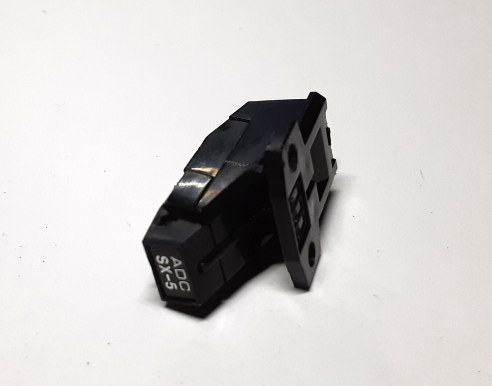 ADC SX-5 phono cartridge for sale. This is 3.5 mV movingmagnet type. The cartridge is in perfect operational and cosmetic condition. Ithas 5 hours of play time. Specifications: Output: 3.5 mV Tracks: 1.0-1.5 gram Loads: 47 kOhm Unloads: 3800 Ohm Compliance: 20 Sell: $55 Shipping inside USA is $6 Worldwide shipping is $19