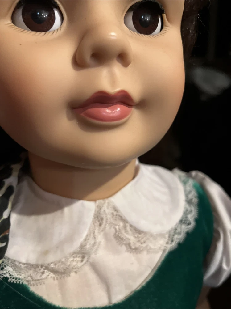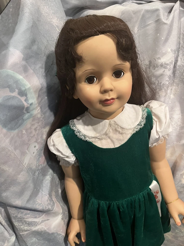 This rare ADG Patti Playpal doll is a collector's dream come true. With brown wavy, curly, and straight hair and brown eyes that open and close, this 35" girl doll is an original vintage piece from the 1960s. The doll comes with a removable wig and clothes, making it perfect for all occasions. Stamped by ADG and manufactured in the United States, this one-of-a-kind doll is a must-have for any serious collector. The doll's complexion is light, and her ethnicity is Caucasian. The packaging is not included, but the doll is sure to be a standout addition to any collection.