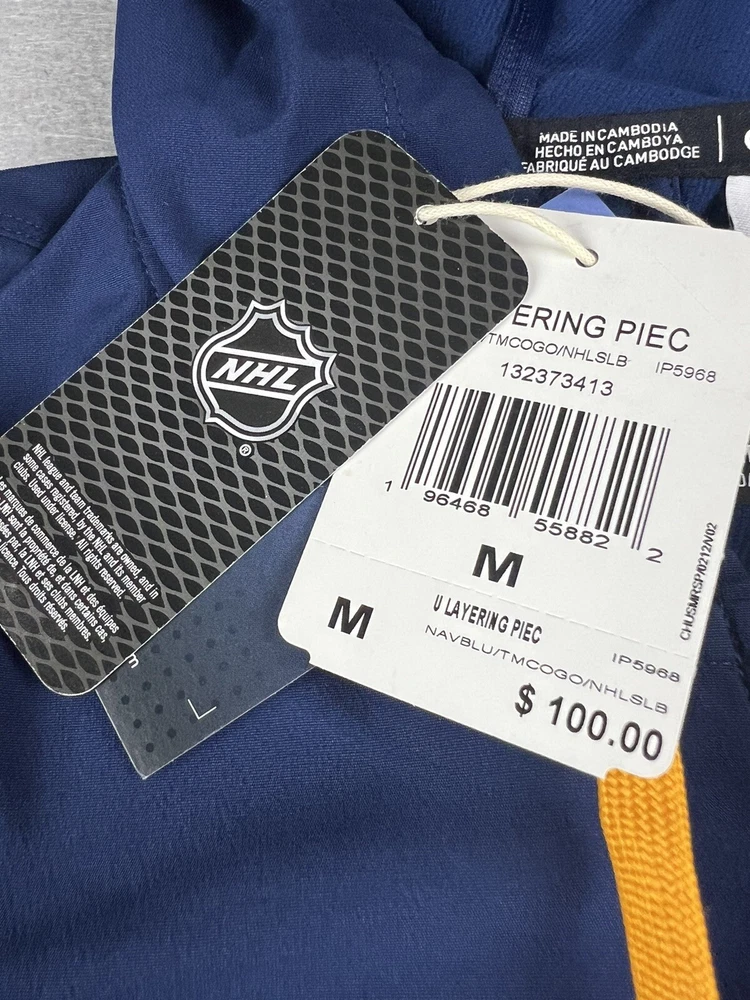Officially Licensed:YesCountry/Region of Manufacture:CambodiaLeague:National Hockey League (NHL)Pre & Post Season:Regular SeasonBrand:adidasSport:HockeyTeam:St. Louis BluesColor:BlueUPC:Does not applyProduct:Jacketgtin13:Does not applySize:MGender:Men