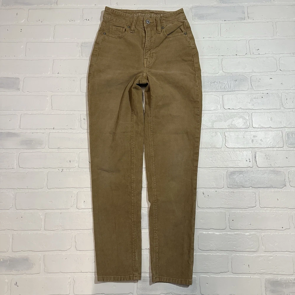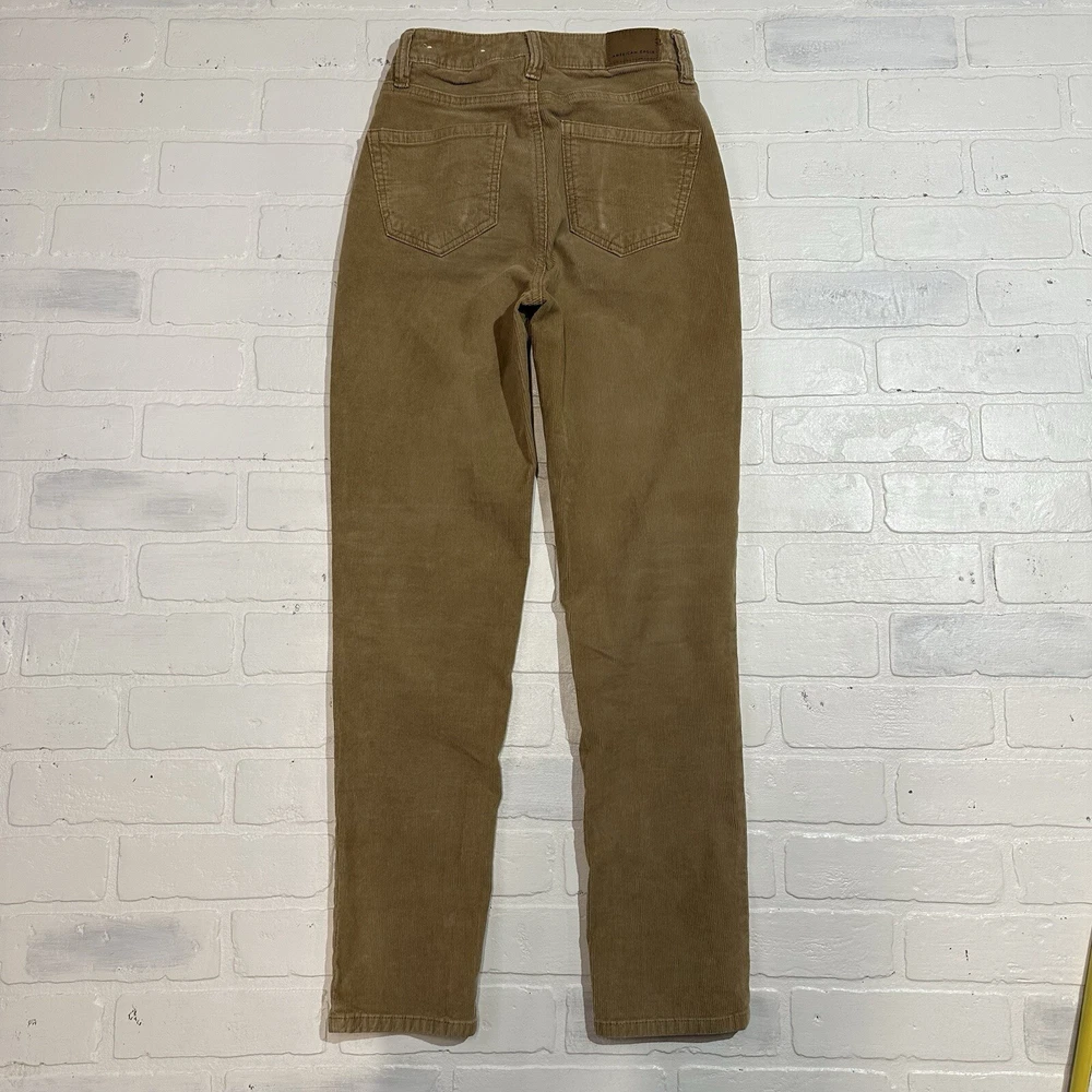 AE Stretch Corduroy Super High-Waisted Skinny Straight Pants Ladies Size 000 Seller does NOT accept returns. See photos for measurements & flaws. Sizes vary depending on manufacturer & era. Please review item description, flaws & sizing prior to purchasing.
