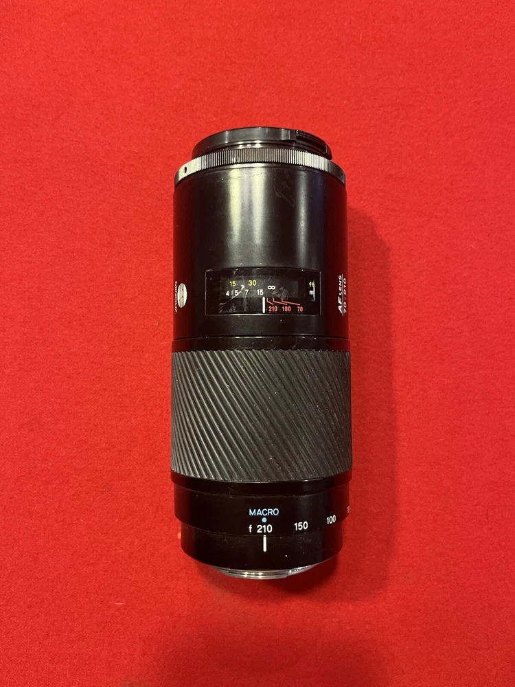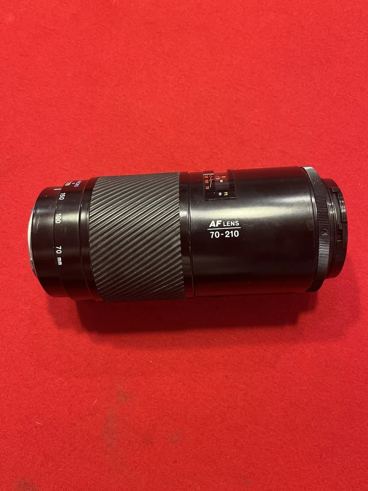 The Minolta AF Lens 70-210mm with a maximum aperture of f/4 is a zoom lens designed for Minolta cameras. It features both auto and manual focus, a compatible front lens size of 55mm, A-mount, and is made of aluminum. This lens was manufactured in Japan and is compatible with 55mm filters.