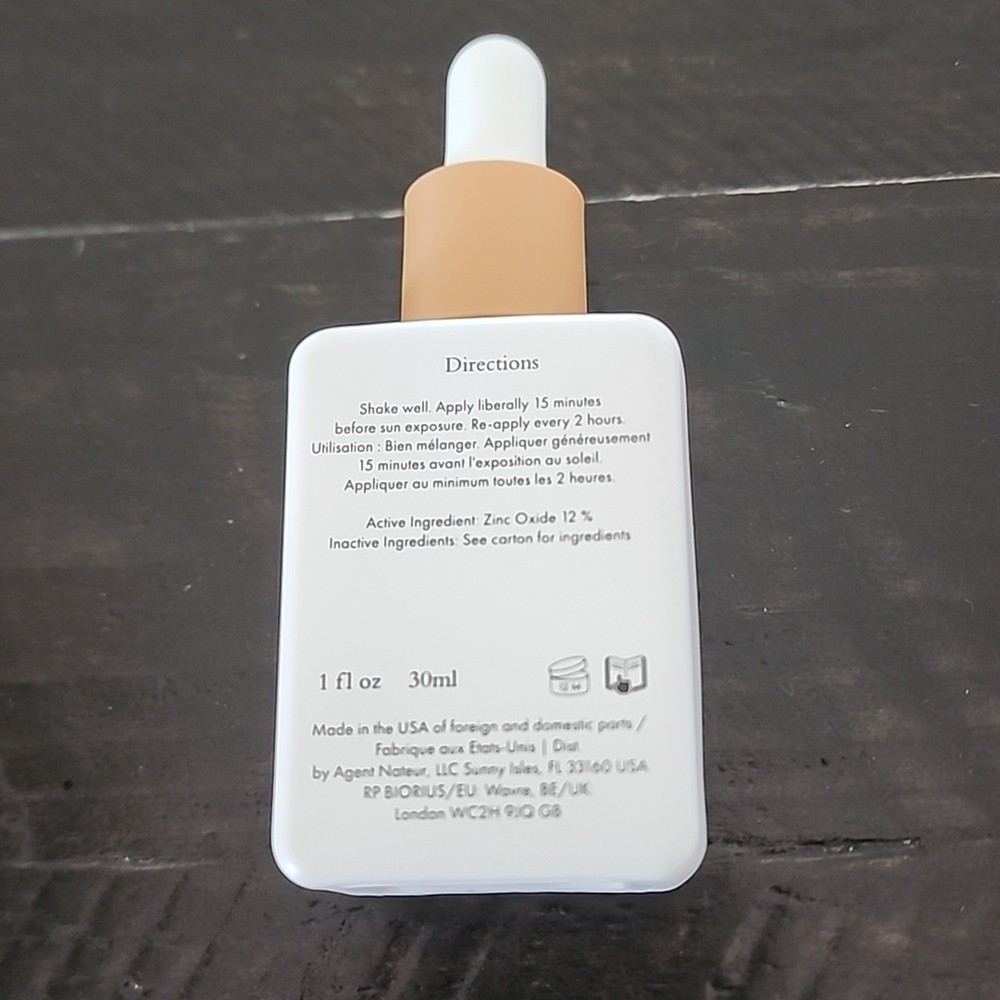 NEW WITH BOX AGENT NATEUR Holi (Sun) Dewy Tinted Skin Drops SPF 50. Full size. Clean beauty. Makeup. Tinted sunscreen. Glass bottle with dropper. "Holi (sun) is a tinted non-nano zinc oxide sunscreen drop with SPF 50+ protection that blocks over 98% of UVA and UVB radiation. It’s packed with niacinamide to reduce the appearance of uneven tones and protect against free radicals and over 35% of blue light radiation (HEVL). What’s more, this non-toxic formula casts a lightweight veil of coverage on the skin while enhancing a lit-from-within glow with a moisturizing blend of plant-based squalene and fatty acid-rich rice bran extract. The result is a formula that acts as a complexion product, skincare regimen, and sun protection all in one easy-to-store tincture. Oh, and there’s no white cast included." Agent Nateur Beauty. Skin. Skin Tint. Tinted Sunscreen. Makeup. Face. Cruelty free. Vegan. Foundation. Cosmetics. Glow. Sun. Travel. Beach. Vacation. Daily Wear. SPF Included. Size: Full size 1 oz Shade: Almond - light to medium complexions Condition: NEW WITH BOX ✔ NEXT DAY SHIPPING ✔ NON-SMOKING ✔ NO TRADING 0520 - 4 / 0 / 6 oz