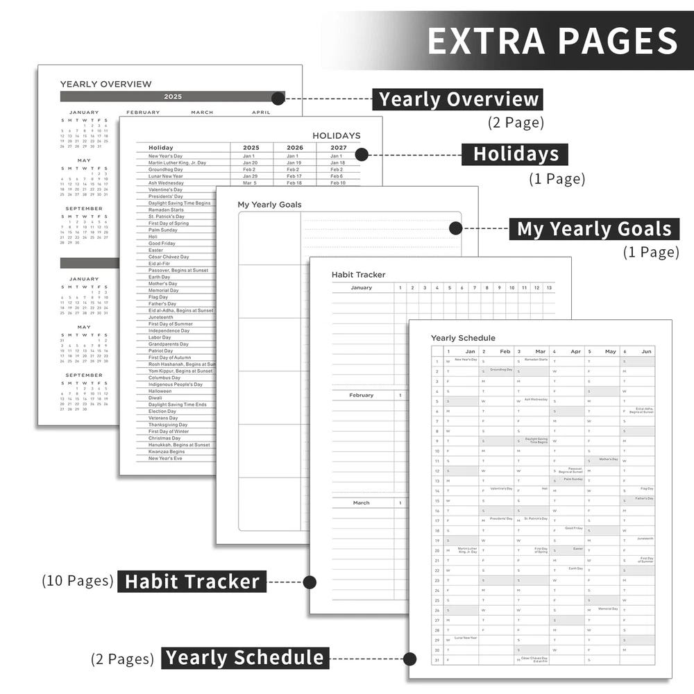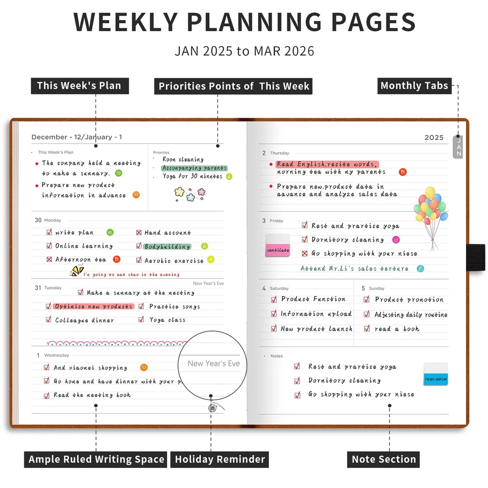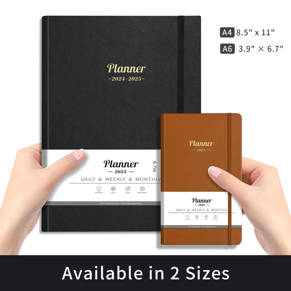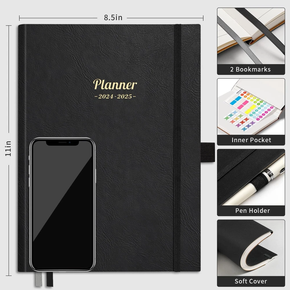 AHGXG 2025 Planner, Weekly and Monthly Planner 2025-2026, Calendar Planner 15-Months Jan 2025 - Mar 2026, Large A4 8.5"x11", with 14 Notes Pages, Vegan Leather SoftCover, Inner Pocket, Black AHGXG Monthly & Weekly 2022-2023 Planner ake charge of your schedule with classic style.High-quality paper, premium, simulated leather cover and twin wire binding to help keep pages secure for prolonged use.Planner has multiple colors AvailableProfessional Design: telephone/address page/yearly schedule/habit tracker/month summary/mindmap/password organizerFeaturesA4 Large Size: Each Weekly Planner comes with A4 size 8.3"x11.7", which will provide you enough room to write with.Durable PU Leather Hard Cover: The durable hardcover will help to protect the pages inside and provide a comfortable writing surface. Inner Pockets Design: The large back pocket is convenient for holding receipts, business cards, stickers, etc.Convenient Bookmark: There are two bookmarks in this ruled Journal to keep your spotHumane Content Design: The humane guide content can help you make a more detailed plan day by day, month by month.Cream Off-White Paper: The cream off-white paper will protect your eyes from strong lights and viewing strain.Enhanced Organization – Expand your organizational skills with special pages. Includes: telephone/address page/yearly schedule/habit tracker/month summary/mindmap/password organizer,etc.Specification2022-2023 Monthly & Weekly Planner100 GSM Thick Paper8 Note PagesElastic Closure Band2 Ribbon Bookmarks1 Expandable Back PocketPackage included1 Pack Weekly Appointment Book & Planner with Creative Sticker 2025 PLANNER: AHGXG 2025-2026 Planner spans 15 months, December 30th and 31st of 2024 and spanning from January 2025 to March 2026. The large A4 size (8.5"x11") gives you plenty of planning room to let your organization flow freely MONTHLY Calendar View: Each month spans two full pages, featuring unruled daily blocks with reminders for US holidays, offering ample space for daily scheduling. The month's goals and summary provide clarity for the next steps. Reference calendars for the previous and next month facilitate easier year-round planning and tracking, making it ideal for long-term organization WEEKLY PLANNING: Each week includes sections for priorities, notes, and ample lined writing space. It allows you to write down your daily to-do list, important appointments, ideas, and more, ensuring efficient organization and productivity COMPREHENSIVE PLANNING: This 2025 planner covers everything you need for year-round planning, including Yearly Overview & Schedule, Important Dates, Holidays, Habit Tracker, Yearly Goals, Month Summary, Note Pages, Address Book, Password Organizer, and US time zone map. Special sections facilitate comprehensive planning, while Sticky Notes Divider simplify navigation PROFESSIONAL DESIGN: 2025-2026 Planner to take charge of your schedule with timeless elegance. Crafted with a premium simulated leather soft cover, tight sewn binding, and 100gsm thick paper, it ensures durability for prolonged use. Additionally, it features an inner pocket to conveniently store miscellay, keeping all essentials within reach Shipping from the USA All of our products are shipped from the USA, ensuring quick delivery to your destination. Payment We offer the following payment methods: PayPal, credit card, bank transfer, and eBay's secure payment system. Free Shipping & Free Returns Shipping within the USA is FREE. Additionally, any return is absolutely free for you. Risk-Free Purchase You have the option to return an item within 30 days without any justification. We cover the return shipping costs! Fast Shipping We ship immediately upon receipt of payment. Generally, the package is delivered within 2-3 days in the USA. If it takes longer, we will contact you. Quality and Costs Made in Europe, USA, China No customs fees or additional charges Total satisfaction guarantee Invoice with declared VAT available upon request in .pdf format Feedback Your feedback is very important to us. After you pay for your purchase, you will automatically receive positive feedback from us.